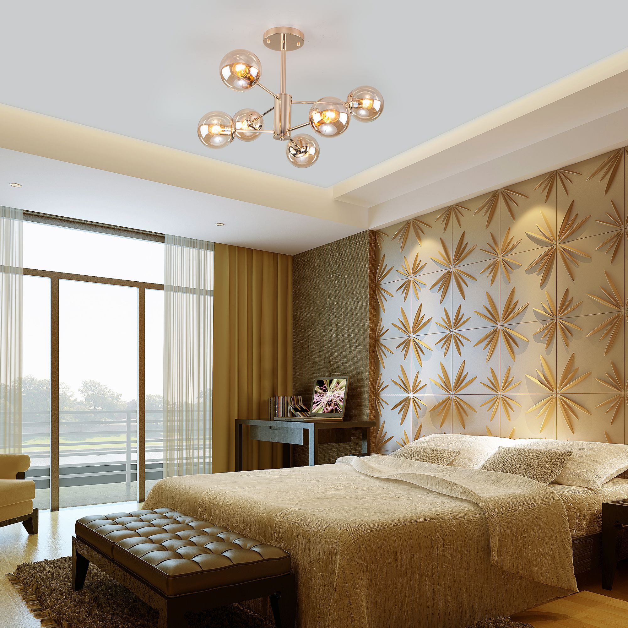 Осветительный прибор разработан в стиле Модерн. Применяются лампы с цоколем E27 мощностью 60 Вт, количеством 6 шт. Цвет модели a047250: Золотой.