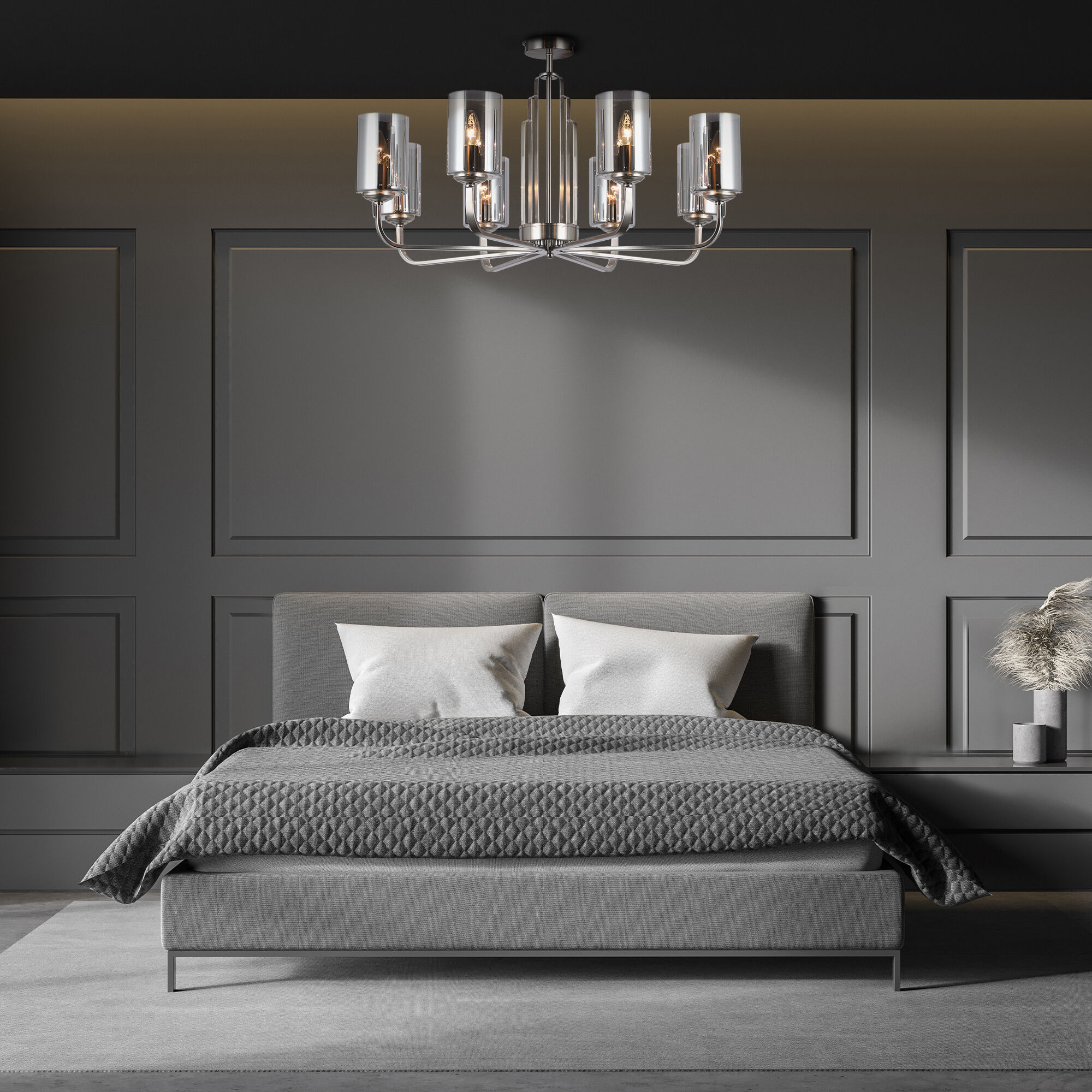 Потолочная люстра Eurosvet Defi a060904 60138/8 сатин-никель на штанге, в современном стиле