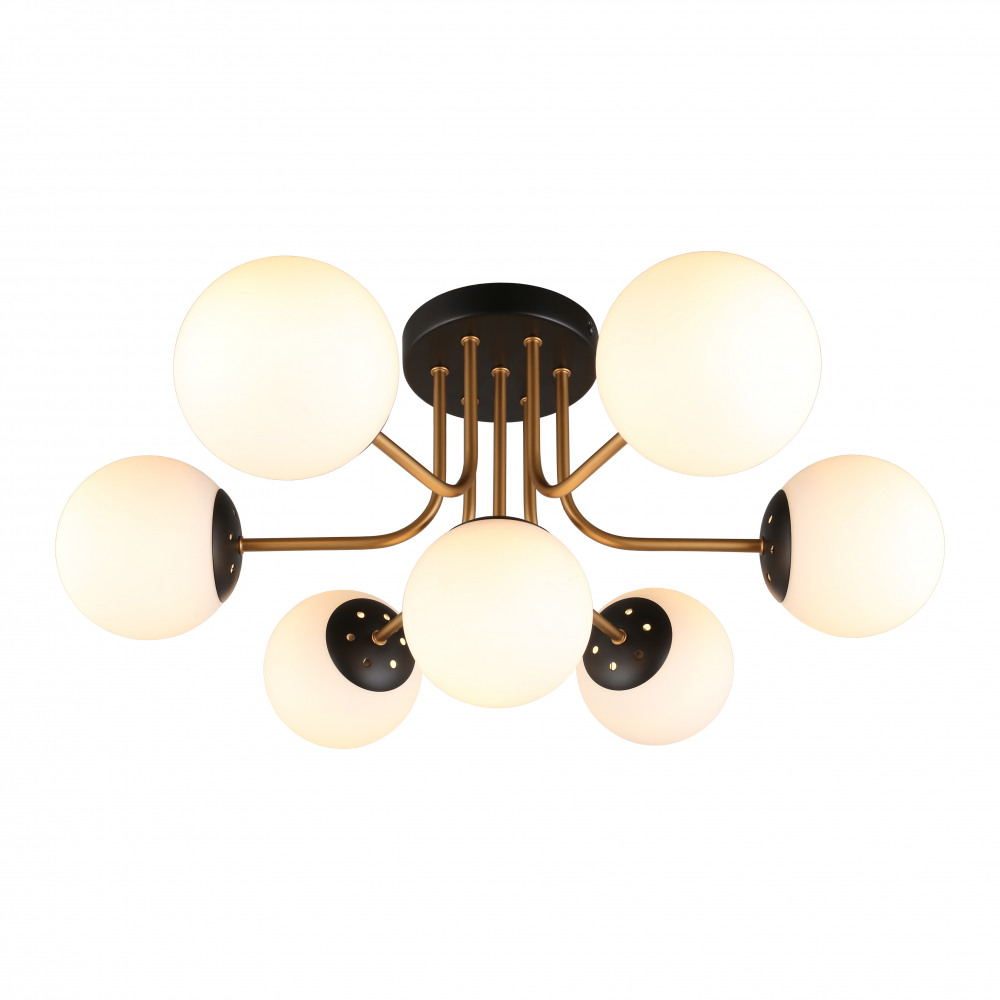 Осветительный прибор выполнен в стиле Лофт. Задействуются лампы цоколя E27 мощностью 280 Вт, в количестве 7 шт. Основной цвет модели APL.906.17.07: Белый.