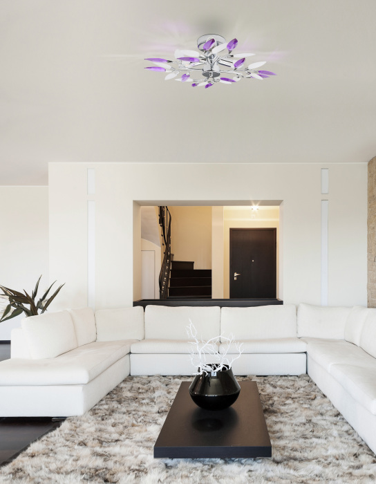 Осветительный прибор выполнен в стиле Современный. Используются лампы с цоколем E14 мощностью 120 Вт, количеством 3 шт. Цвет модели 63167-3: Белый,Фиолетовый.