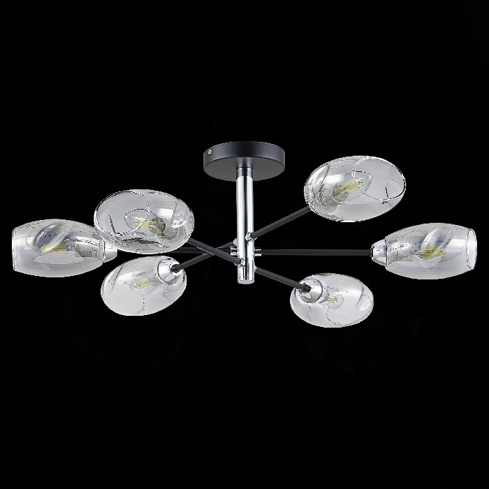 Осветительный прибор создан в стиле Модерн. Задействуются лампы цоколя E14 мощностью 240 Вт, количеством 6 ед. Основной цвет модели SLE155512-06: Серый.