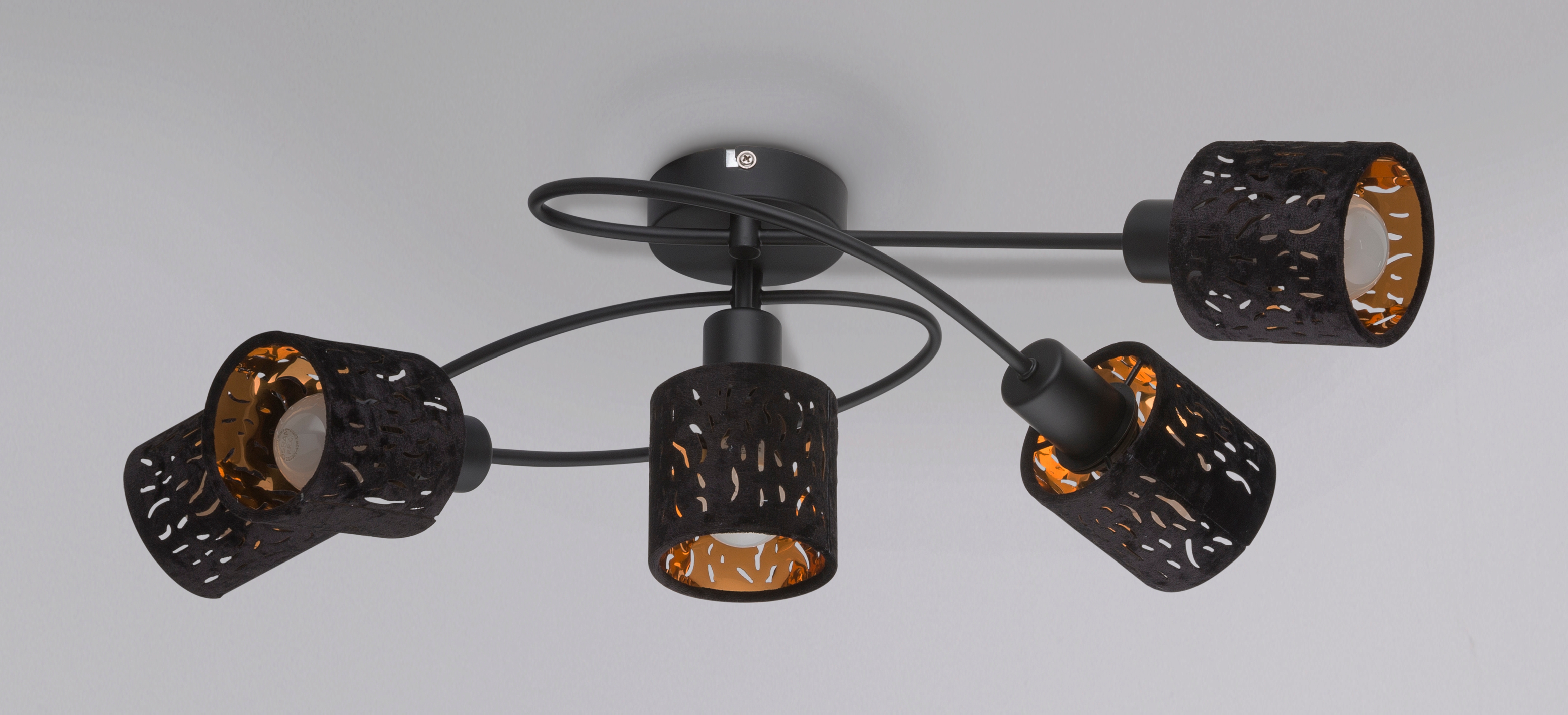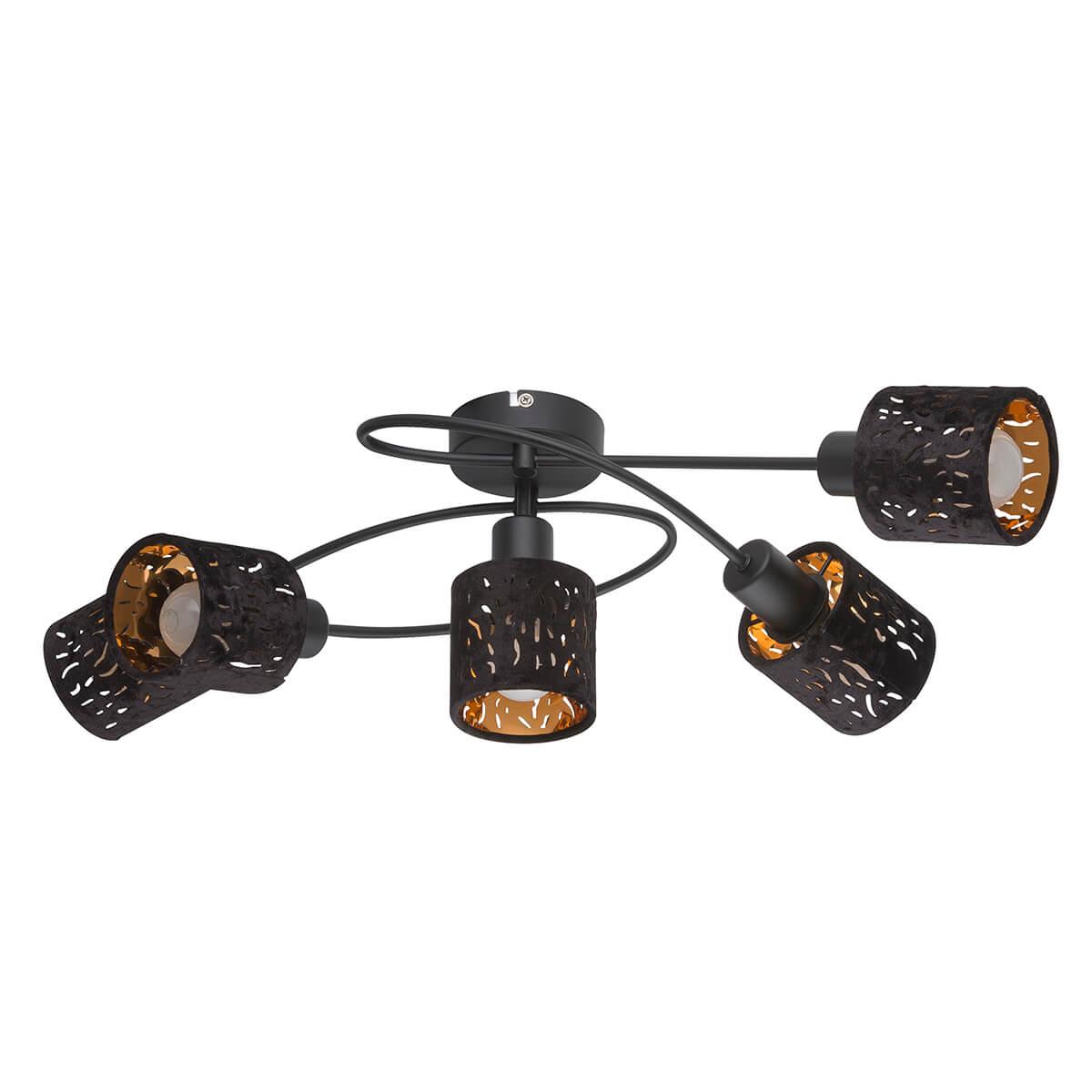 Осветительный прибор разработан в стиле Современный. Задействуются лампочки цоколя E14 мощностью 40 Вт, в количестве 5 ед. Цвет модели 54121-5: Чёрный.