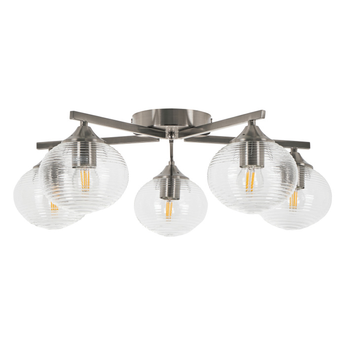 Осветительный прибор разработан в стиле Современный. Используются лампы цоколя E27 мощностью 300 Вт, в количестве 5 шт. Основной цвет модели MR1790-5C: Прозрачный.