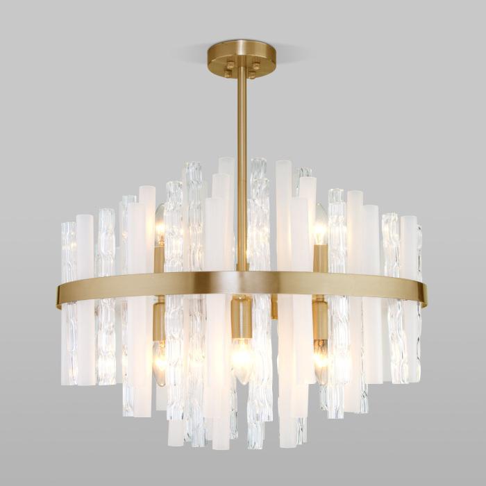 Осветительный прибор создан в стиле Классический. Применяются лампы цоколя E14 мощностью 540 Вт, в количестве 9 шт. Основной цвет модели 368/9 Smart латунь: Белый,Прозрачный.