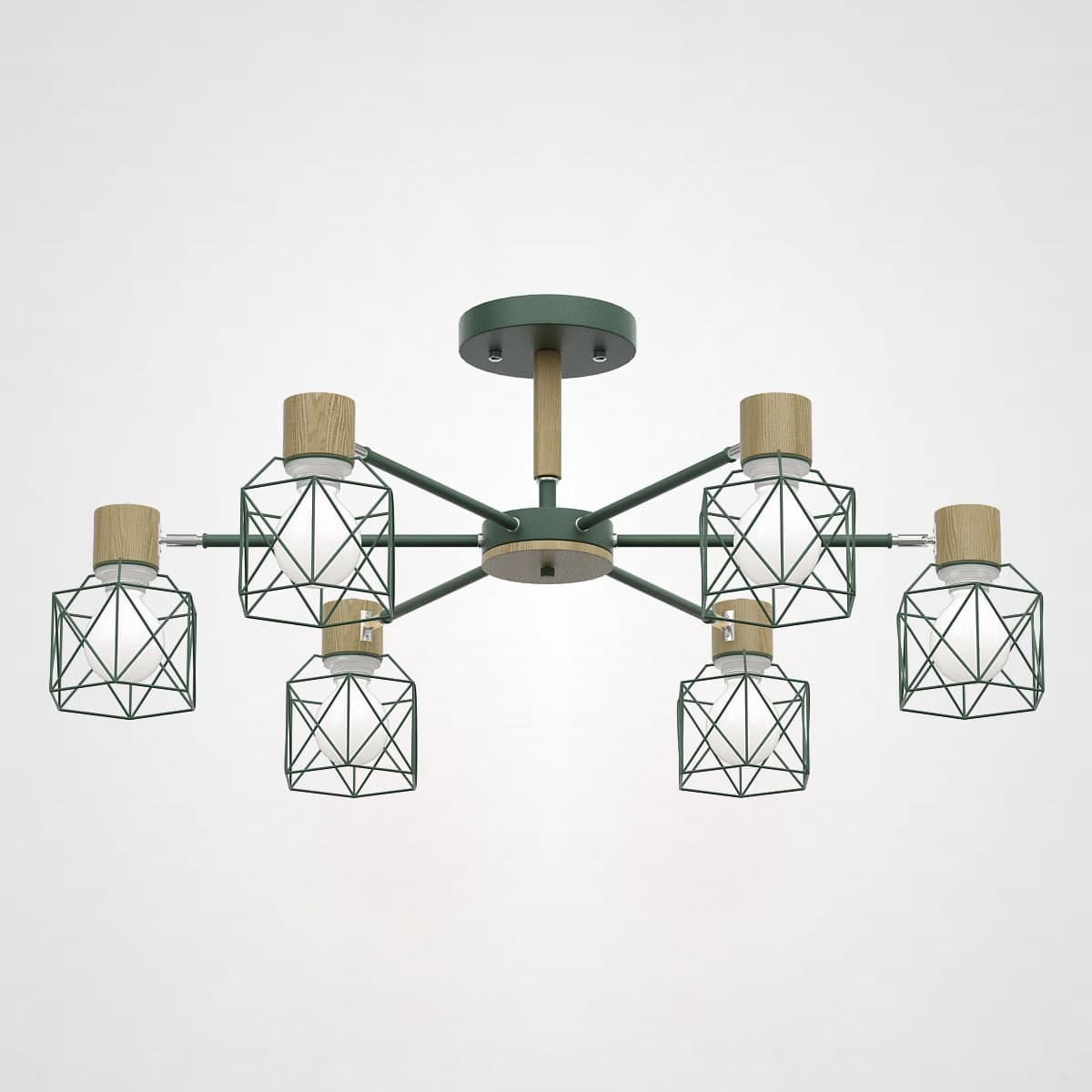 Потолочная люстра ImperiumLoft CORF B3 Green 6 lamps 189484-26 зеленая, на штанге, рожковая, в скандинавском стиле