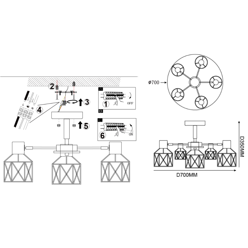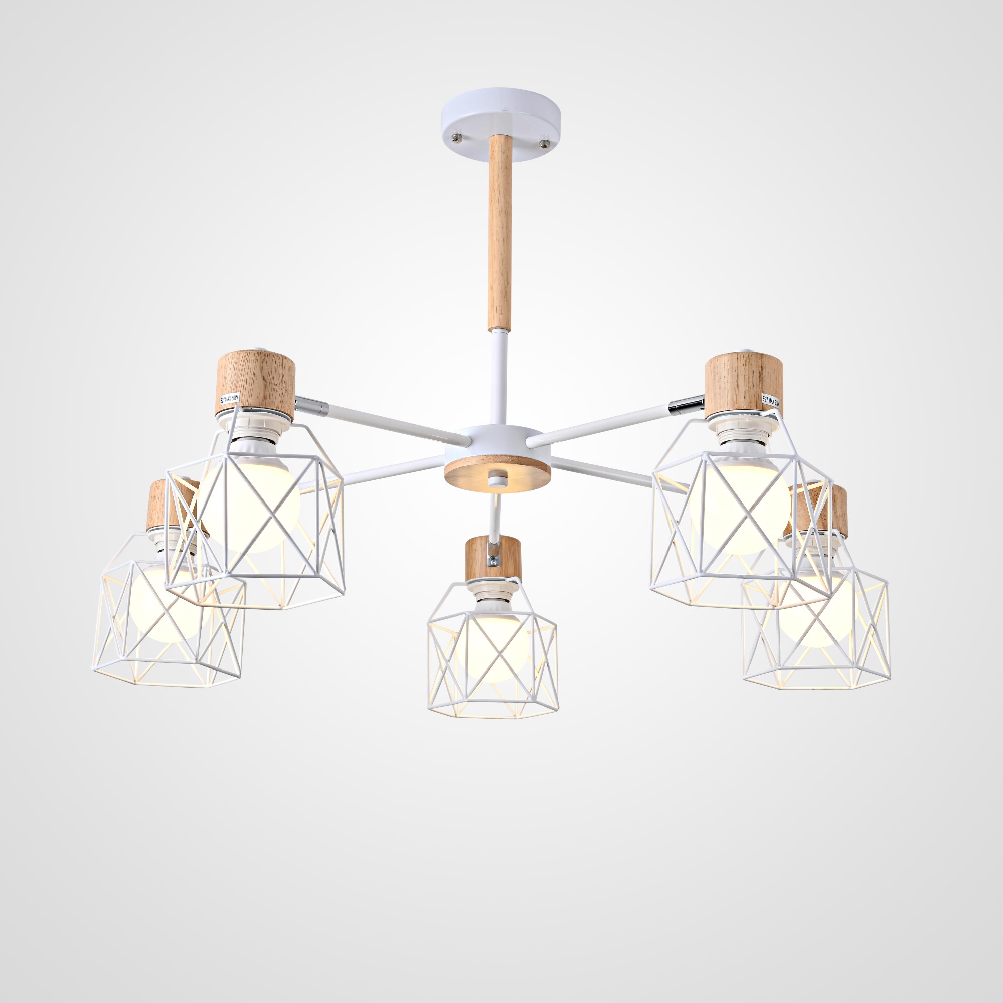 Осветительный прибор создан в стиле Скандинавский. Используются лампочки цоколя E27 мощностью 300 Вт, в количестве 5 ед. Цвет модели 189479-26: Белый.