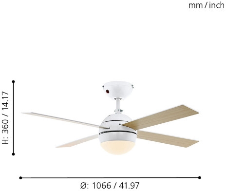 Люстра-вентилятор 35043 от бренда Eglo. Размеры: высота 360 мм, диаметр 1066 мм. Люстры Eglo 35043 созданы с применением высококачественных и прочных материалов: Металлические,металл, плафон - Стеклянные,стекло.