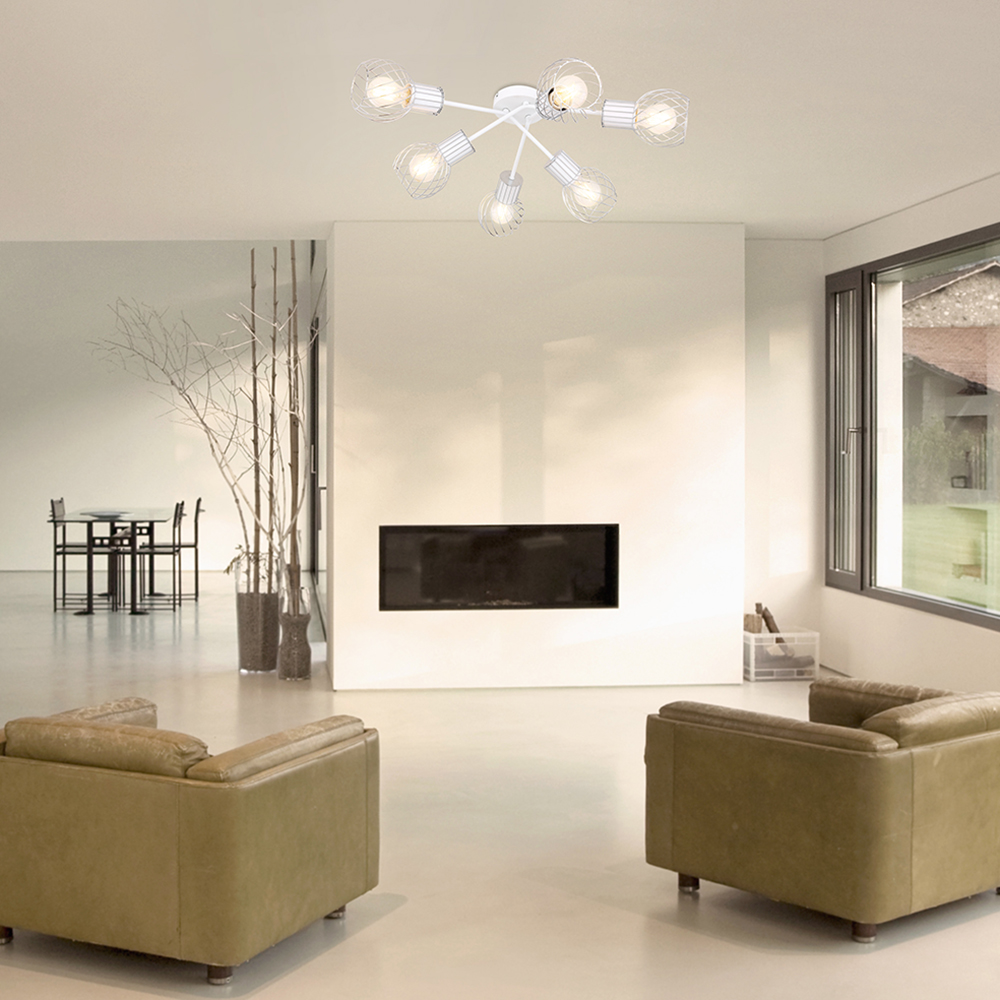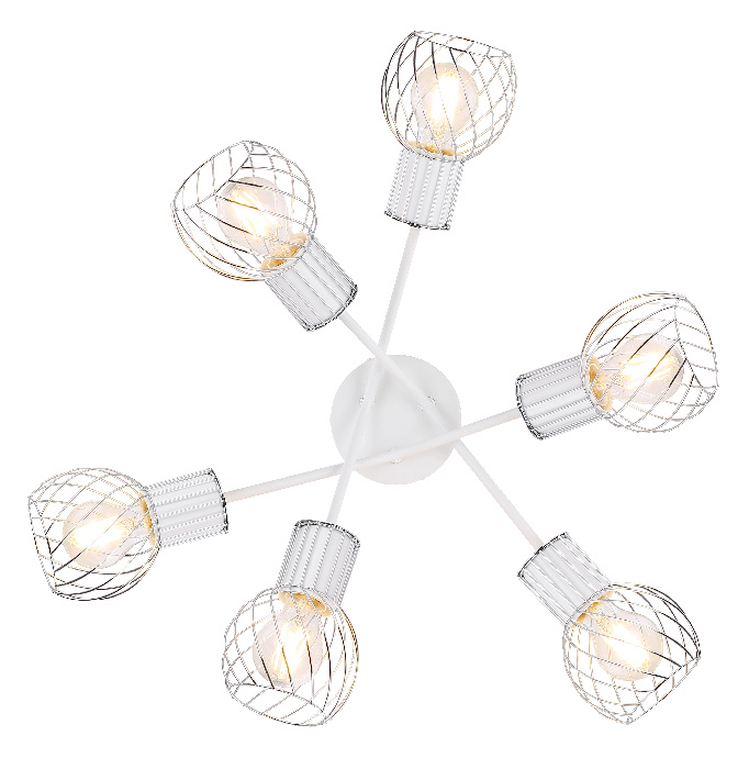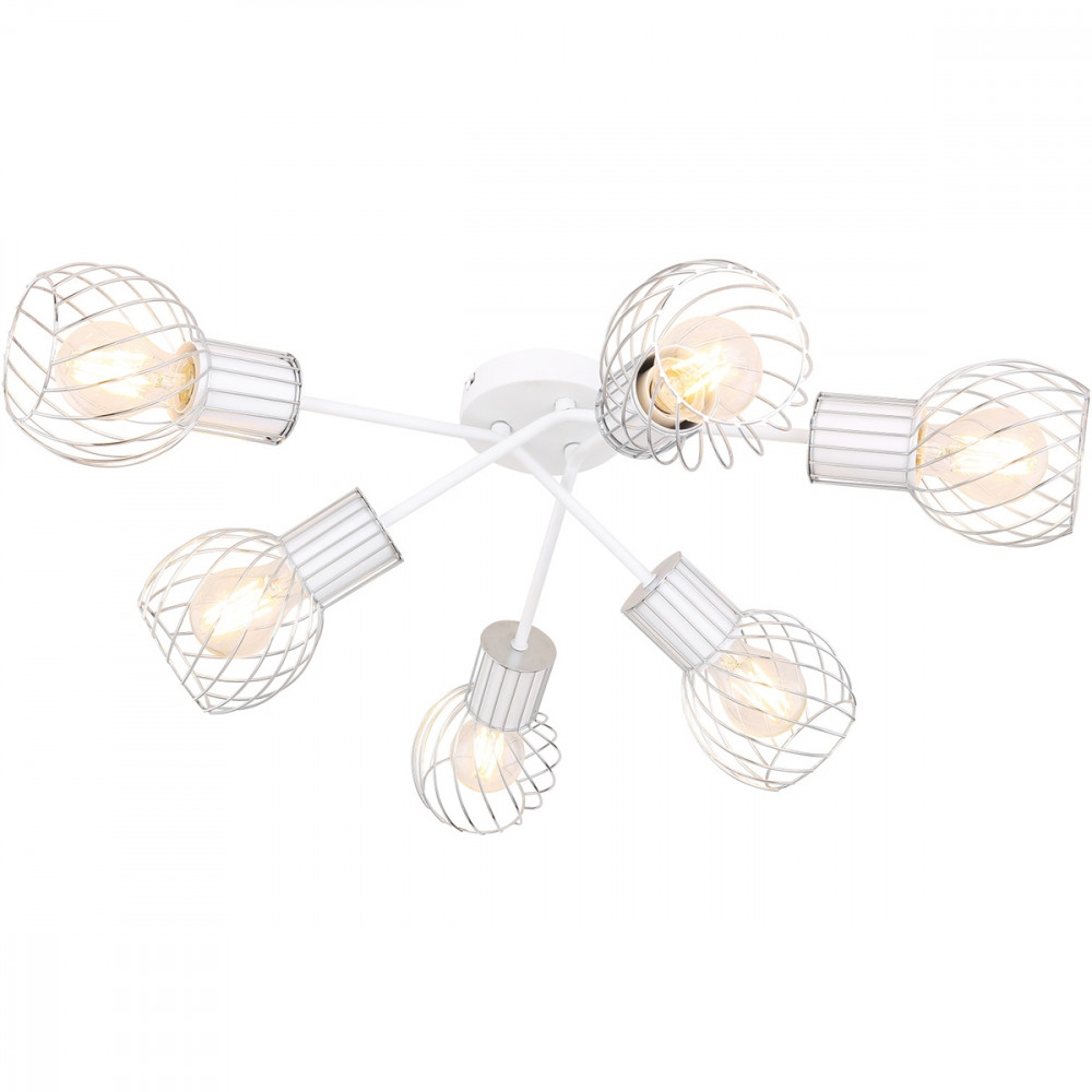Осветительный прибор сделан в стиле Модерн. Задействуются лампочки с цоколем E27 мощностью 240 Вт, количеством 6 ед. Основной цвет модели 54014-6D: Белый.