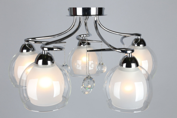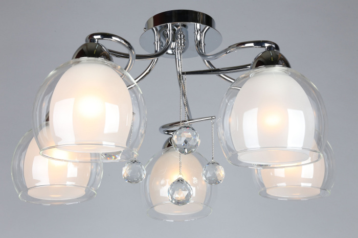 Осветительный прибор сделан в стиле Модерн. Задействуются лампочки с цоколем E27 мощностью 200 Вт, количеством 5 ед. Основной цвет модели OML-54707-05: Прозрачный.