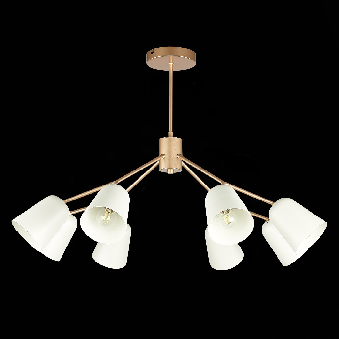 Осветительный прибор выполнен в стиле Модерн. Применяются лампы с цоколем E14 мощностью 320 Вт, количеством 8 шт.