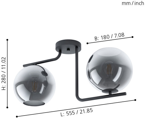 Осветительный прибор создан в стиле Хай-тек. Задействуются лампочки с цоколем E27 мощностью 56 Вт, в количестве 2 шт. Основной цвет модели 98514: Прозрачный,Чёрный.