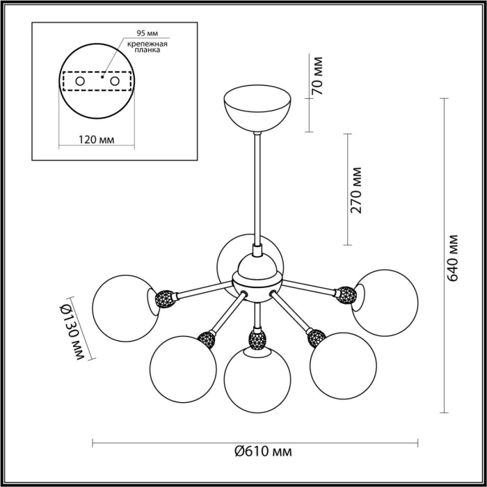 Люстра потолочная 6536/6C изготавливается брендом Lumion и принадлежит коллекции Marsha. Габариты: высота 640 мм, диаметр 610 мм. Люстры Lumion 6536/6C произведены из высококачественных и прочных материалов: металл, плафон - стекло.