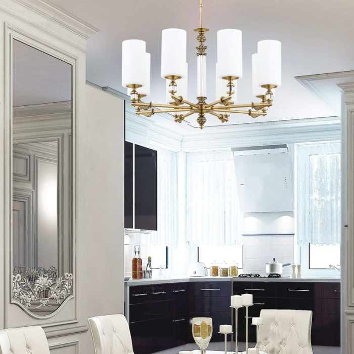 Осветительный прибор разработан в стиле Классический. Применяются лампочки цоколя E14 мощностью 320 Вт, в количестве 8 ед. Цвет модели MER-ZW-8(P): Белый.
