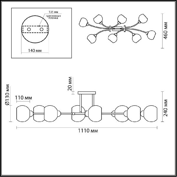 Подходят лампочки с цоколем E14 мощностью 320 Вт, в количестве 8 шт. Основной цвет модели 4517/8C: Белый.