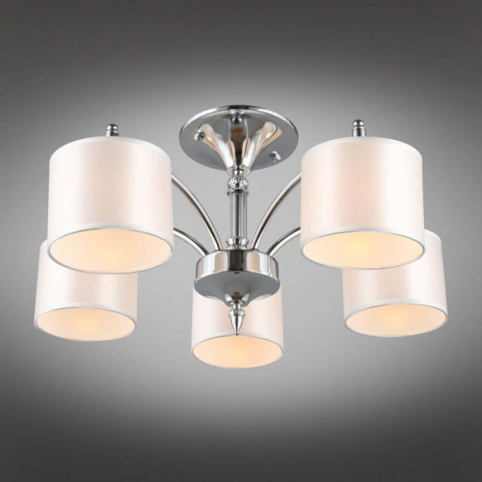 Осветительный прибор сделан в стиле Современный. Используются лампочки с цоколем E14 мощностью 200 Вт, количеством 5 ед. Основной цвет модели OML-64707-05: Белый.