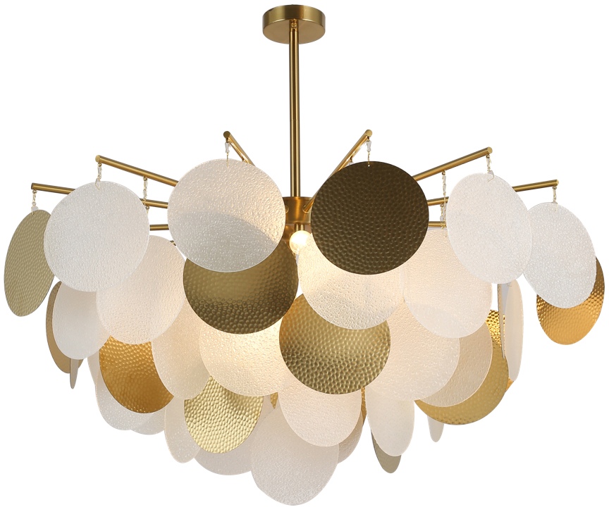 Осветительный прибор сделан в стиле Модерн. Задействуются лампы с цоколем E14 мощностью 480 Вт, в количестве 8 ед. Цвет модели OML-89907-08: Белый,Бронза.