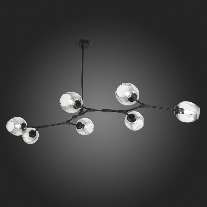 Осветительный прибор сделан в стиле Модерн. Используются лампочки с цоколем E27 мощностью 280 Вт, количеством 7 ед. Основной цвет модели SLE154843-07: Прозрачный,Серый.