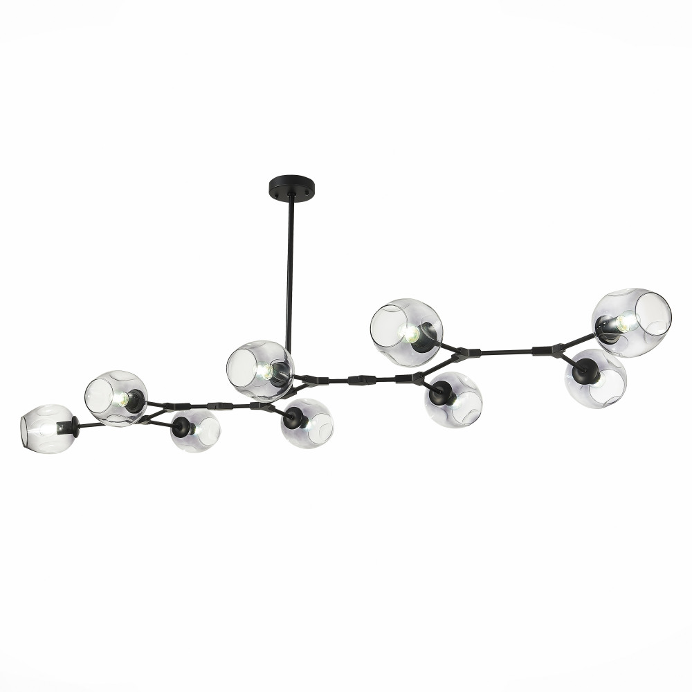 Осветительный прибор создан в стиле Модерн. Применяются лампочки с цоколем E27 мощностью 360 Вт, количеством 9 ед. Основной цвет модели SLE154843-09: Прозрачный,Серый.
