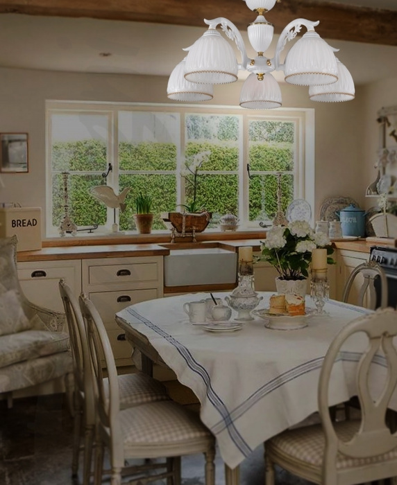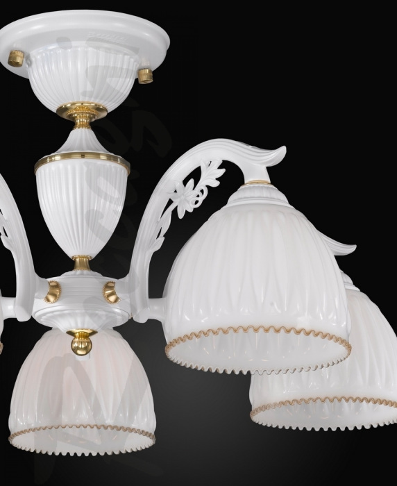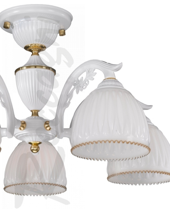 Осветительный прибор разработан в стиле Классический. Используются лампы цоколя E27 мощностью 300 Вт, количеством 5 ед. Основной цвет модели PL 9601/5: Белый.