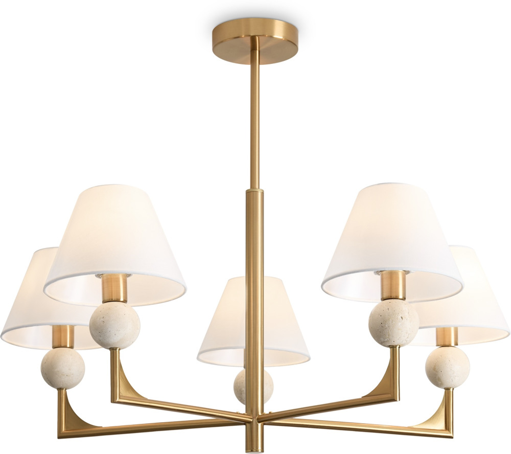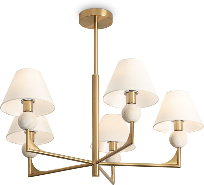 Осветительный прибор выполнен в стиле Модерн. Задействуются лампы с цоколем E14 мощностью 200 Вт, количеством 5 шт. Цвет модели FR2043CL-05BS: Белый.