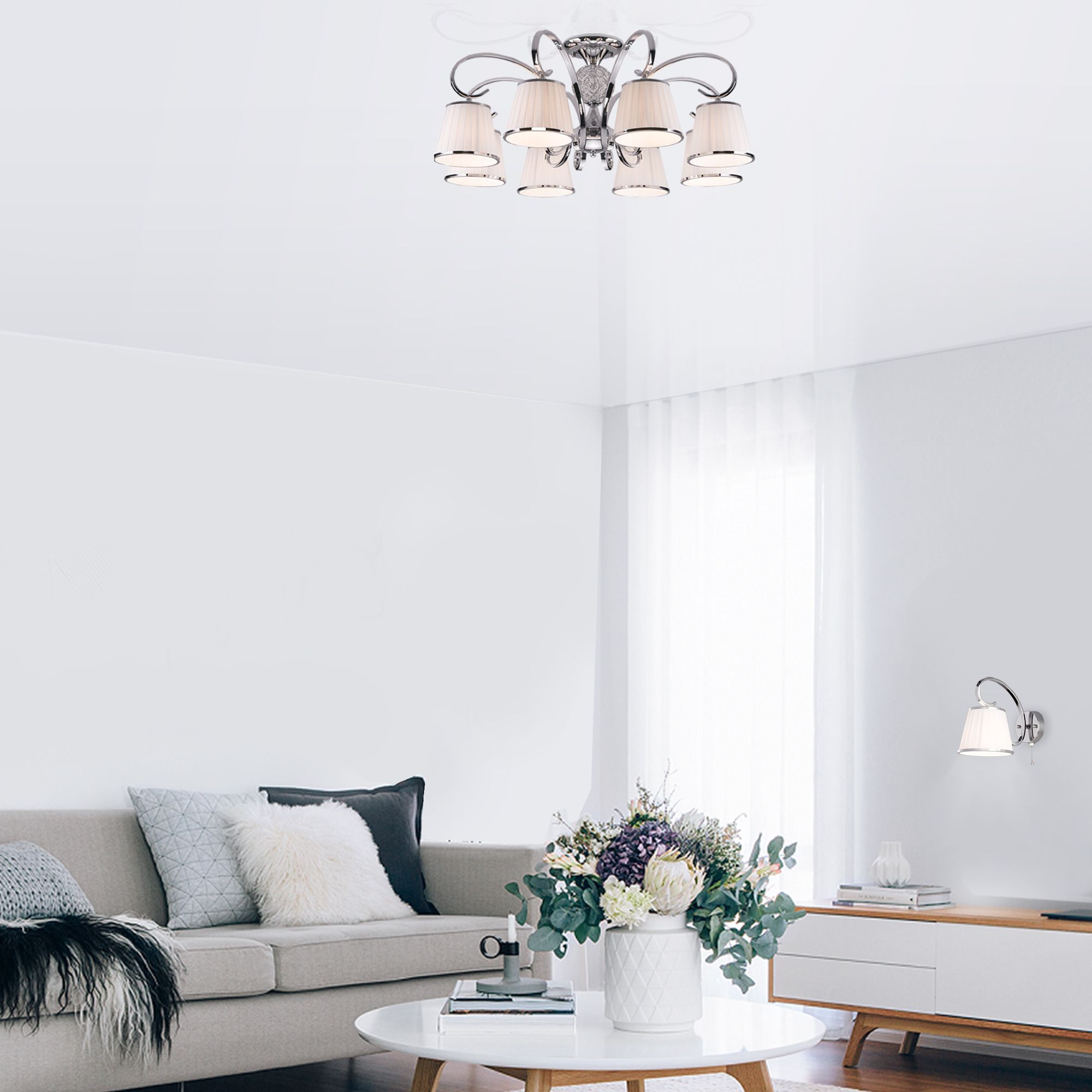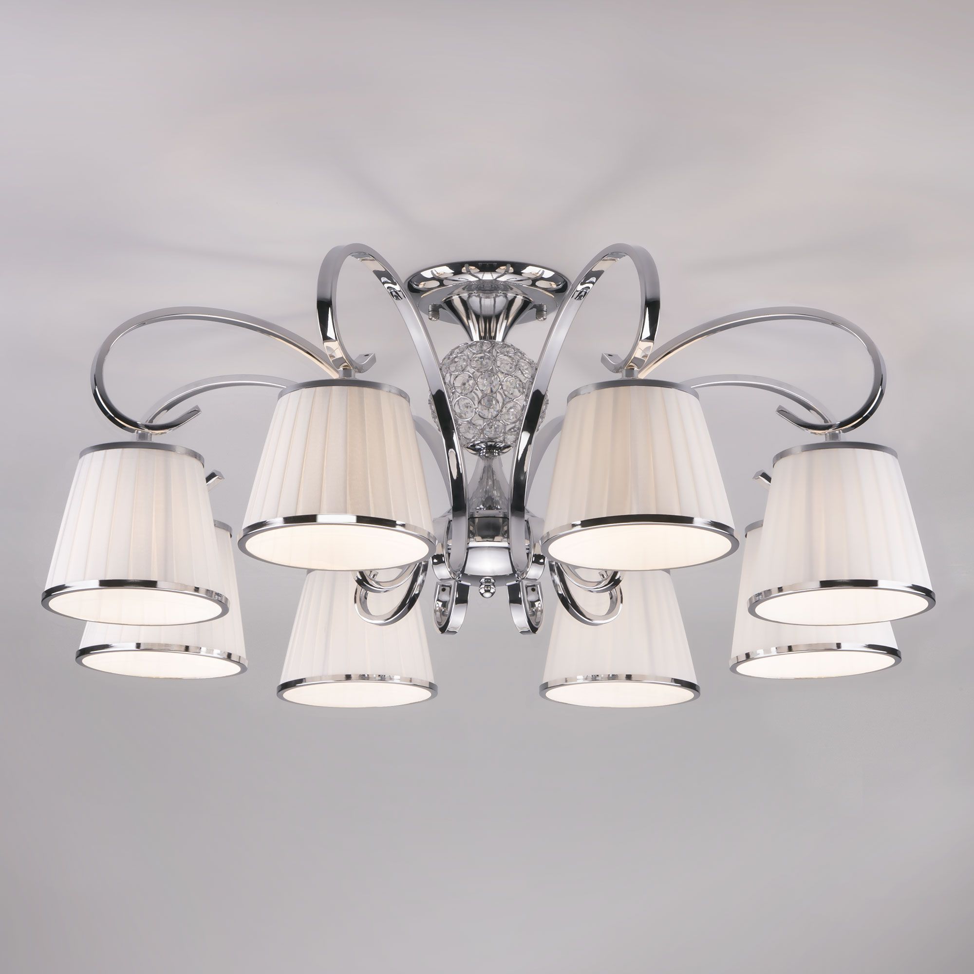 Потолочная люстра с абажурами Eurosvet Tessa a043771 60088/8 хром на штанге, рожковая, в классическом стиле