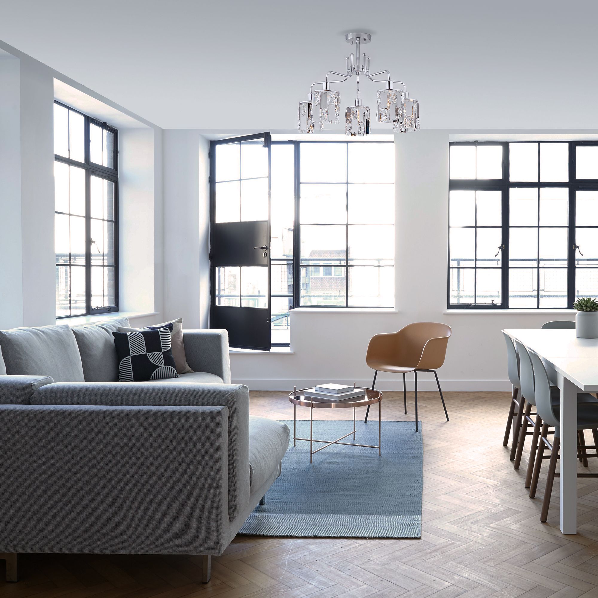 Осветительный прибор разработан в стиле Контемпорари. Применяются лампы с цоколем E14 мощностью 60 Вт, в количестве 5 ед. Цвет модели a044067: Хром.