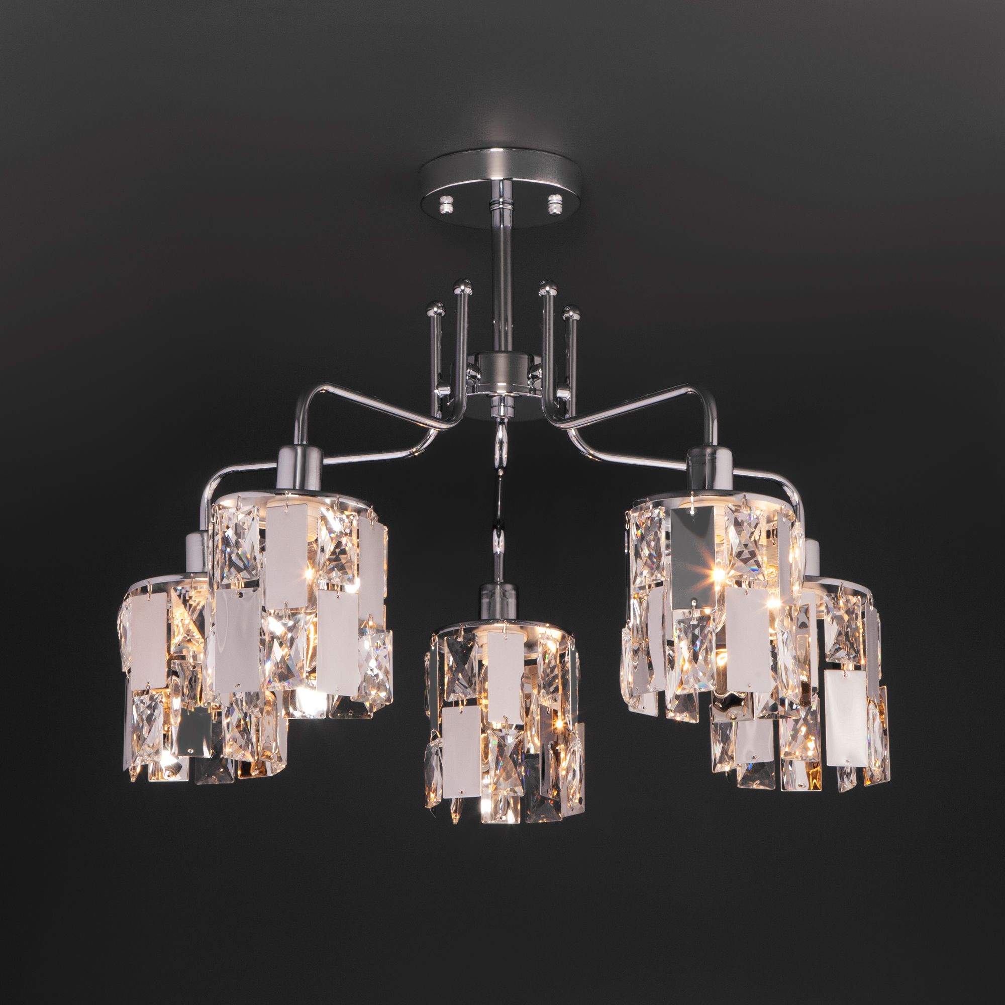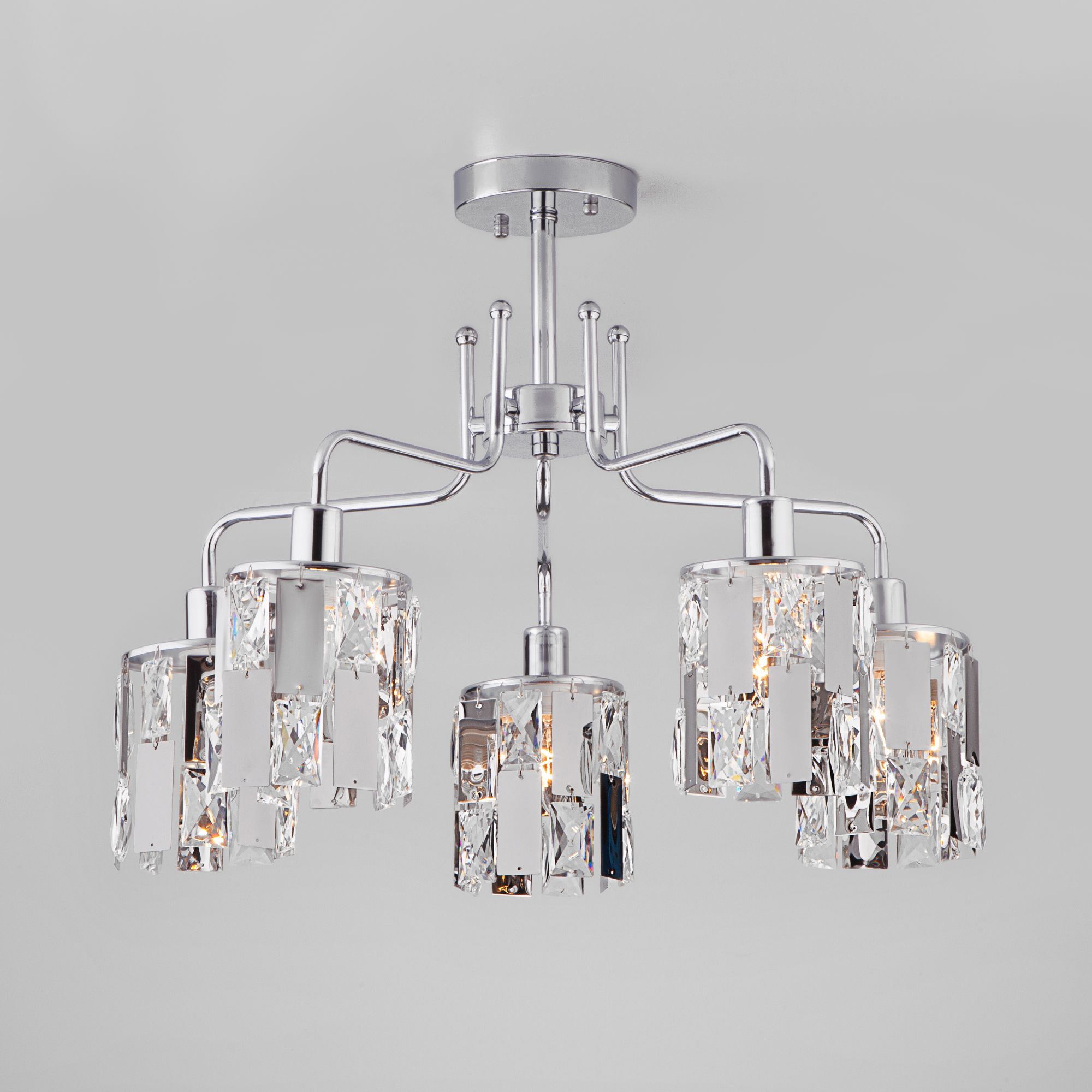 Потолочная люстра с хрусталем Eurosvet Scoppio a044067 10101/5 хром/прозрачный хрусталь Strotskis на штанге, рожковая, в классическом стиле