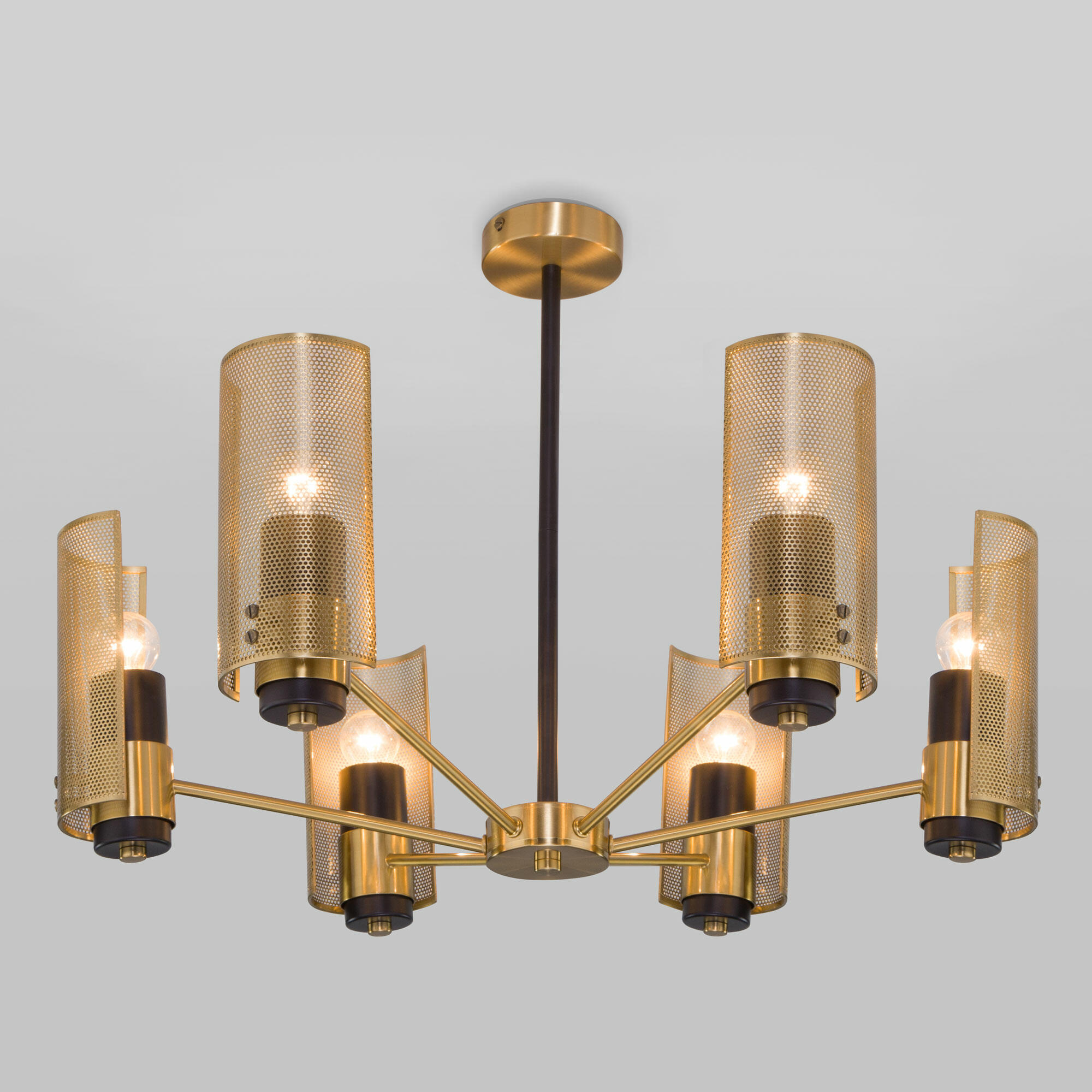 Потолочная люстра с металлическими плафонами Eurosvet Grino a057940 70139/6 латунь на штанге, рожковая, в современном стиле