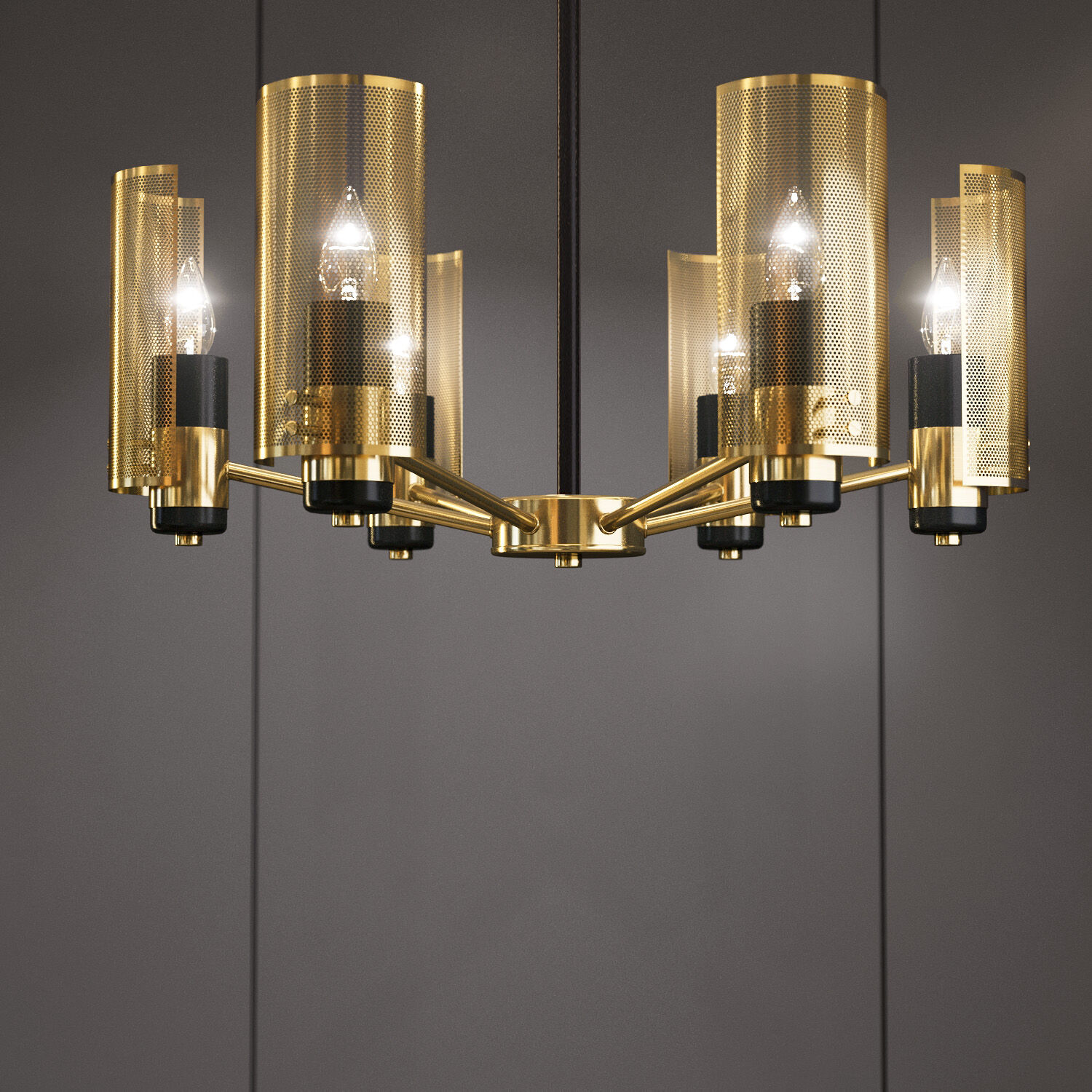 Осветительный прибор выполнен в стиле Современный. Задействуются лампочки с цоколем E14 мощностью 60 Вт, в количестве 6 шт. Основной цвет модели a057940: Латунь.
