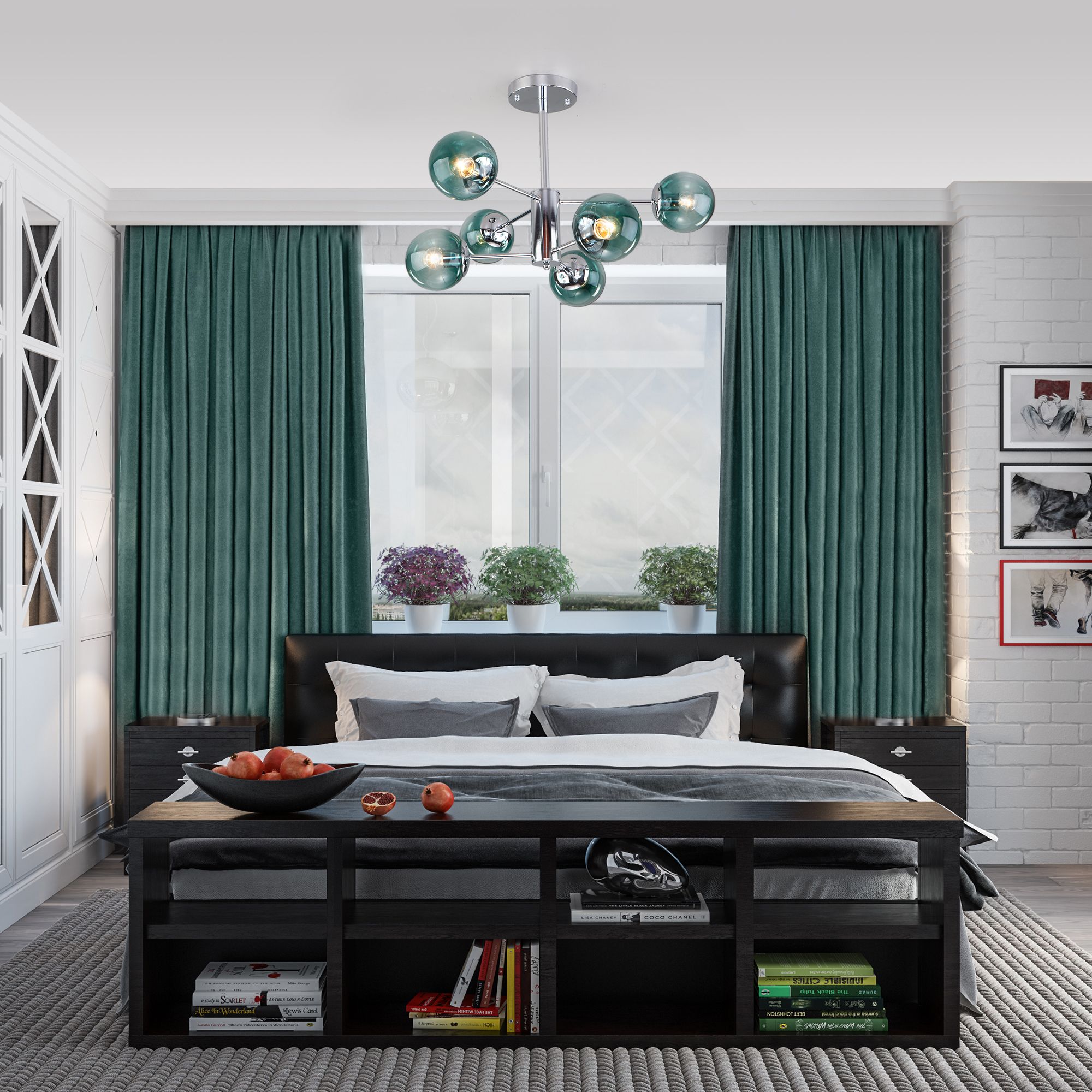 Осветительный прибор разработан в стиле Модерн. Подходят лампы с цоколем E27 мощностью 60 Вт, в количестве 6 ед. Цвет модели a047251: Зелёный.