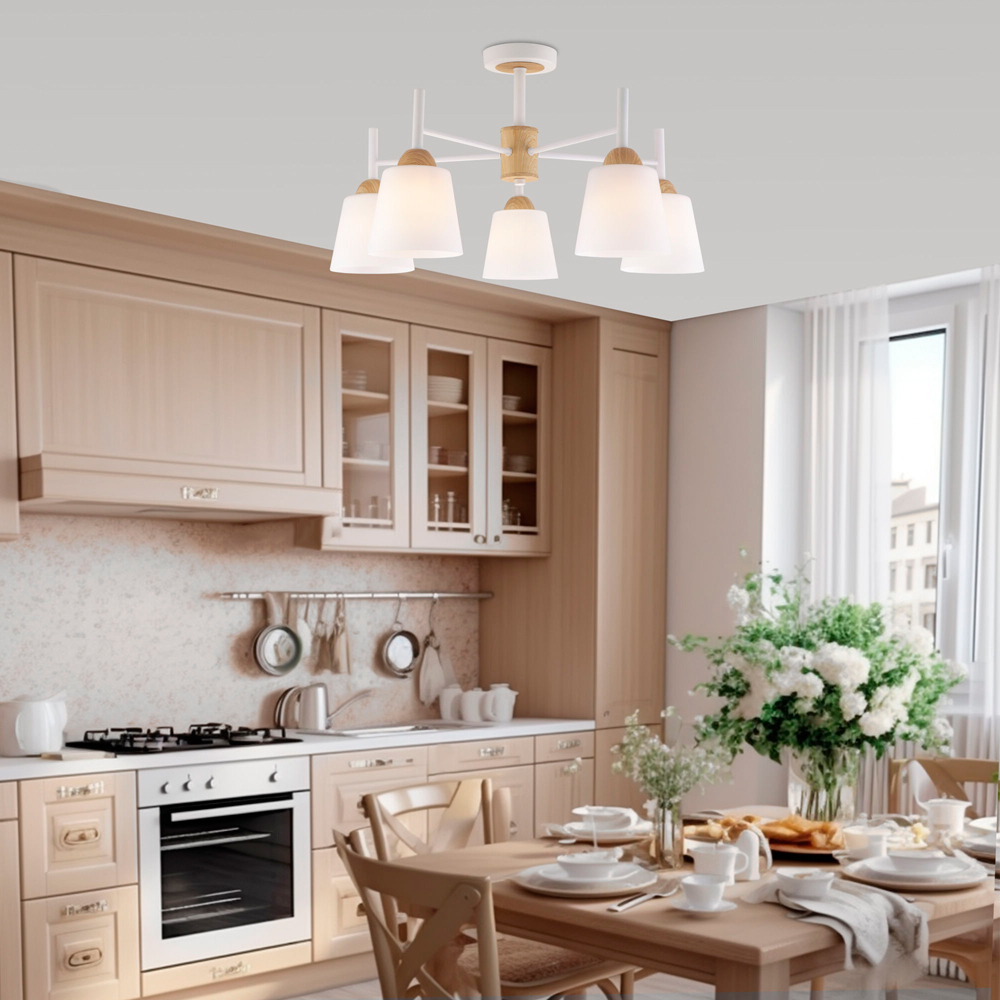 Осветительный прибор создан в стиле Неоклассика. Применяются лампочки цоколя E27 мощностью 60 Вт, в количестве 5 ед. Цвет модели 00000083420: Белый.