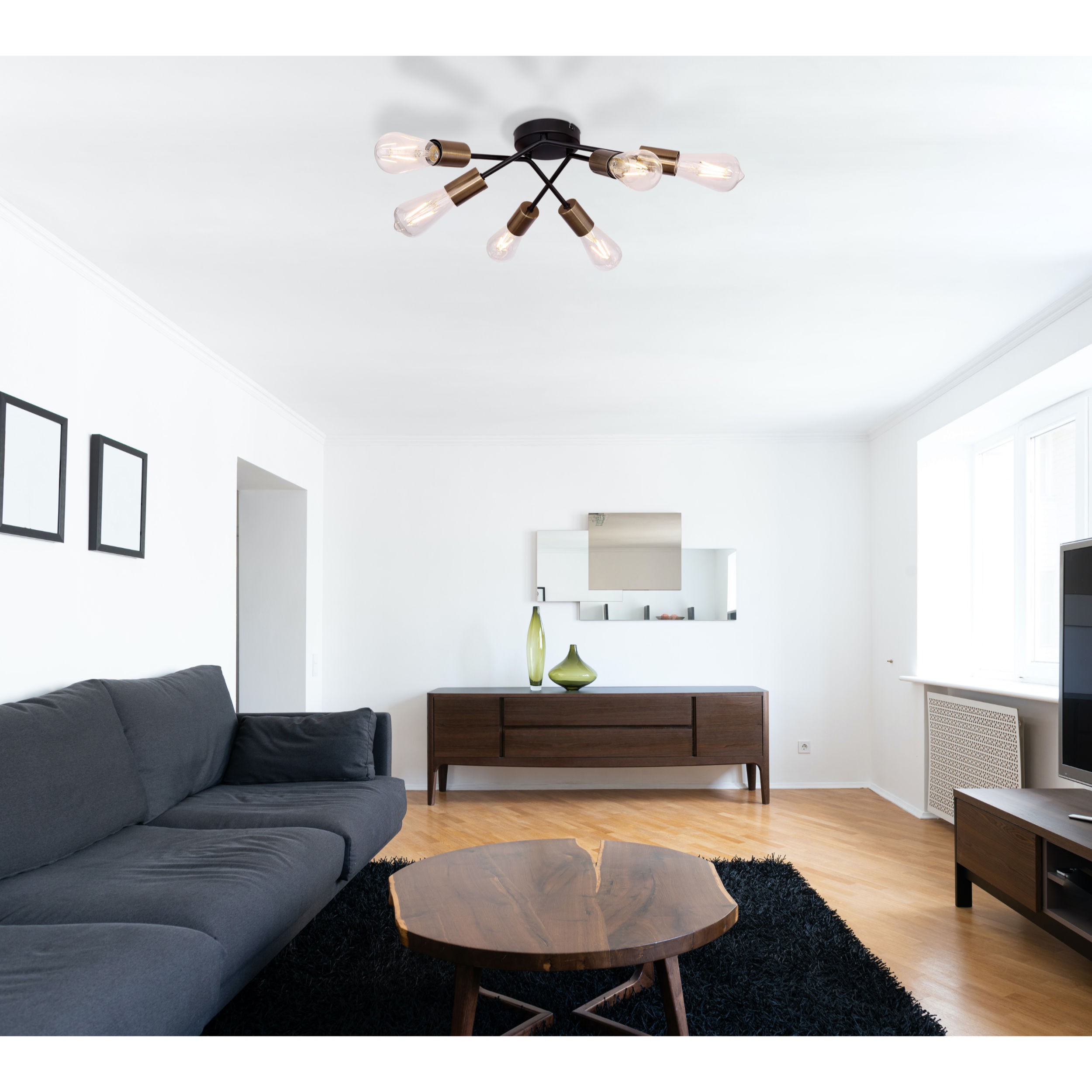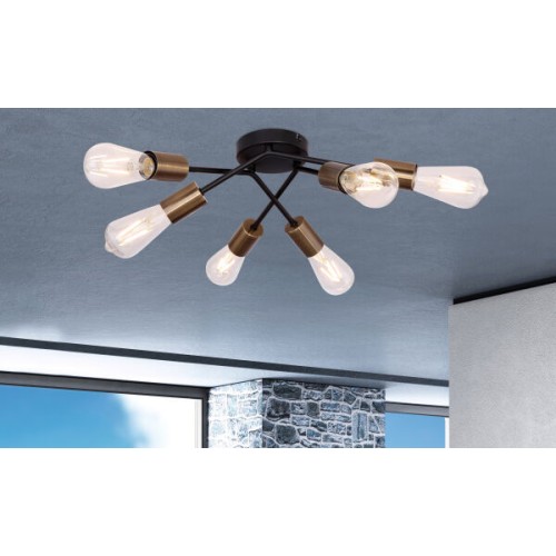 Осветительный прибор выполнен в стиле Контемпорари. Подходят лампы цоколя E27 мощностью 360 Вт, в количестве 6 шт. Основной цвет модели 54003-6D: Чёрный.