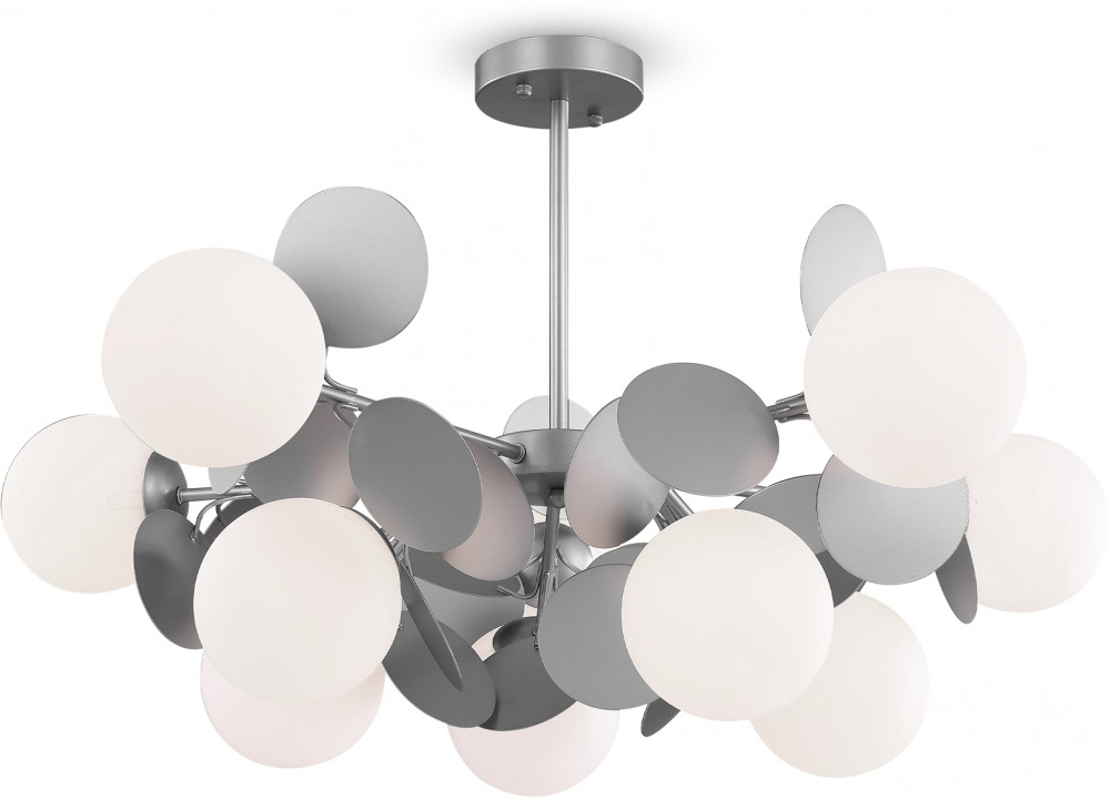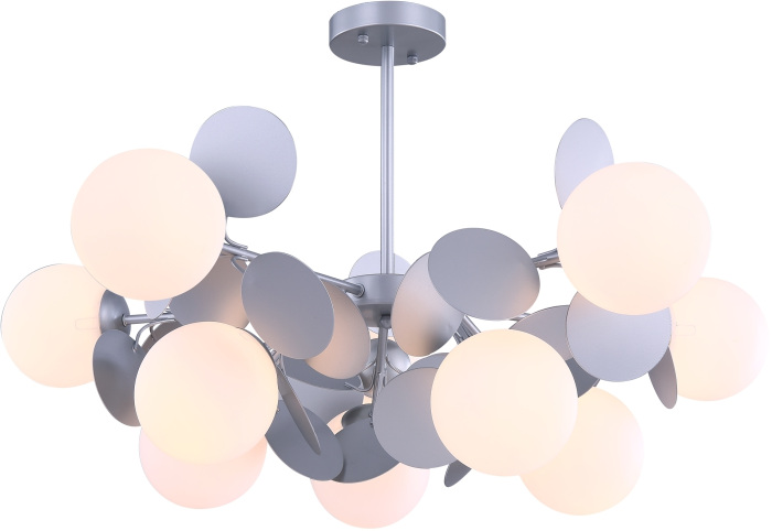 Осветительный прибор сделан в стиле Арт-Деко. Применяются лампочки с цоколем E27 мощностью 600 Вт, количеством 10 ед. Основной цвет модели FR5165PL-10S: Серебряный.