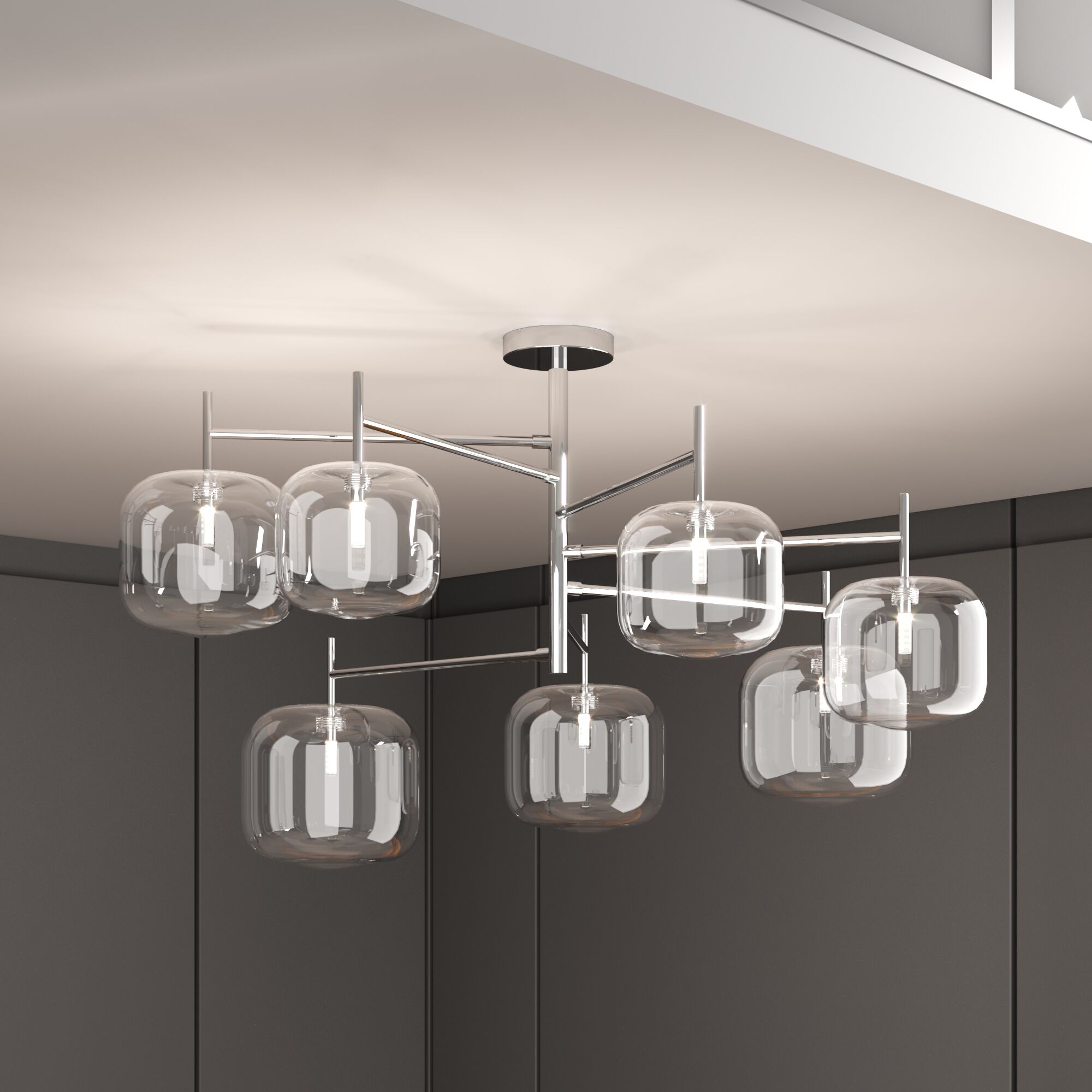 Потолочная люстра со стеклянными плафонами Eurosvet Jar a056925 70128/7 хром на штанге, рожковая, в современном стиле