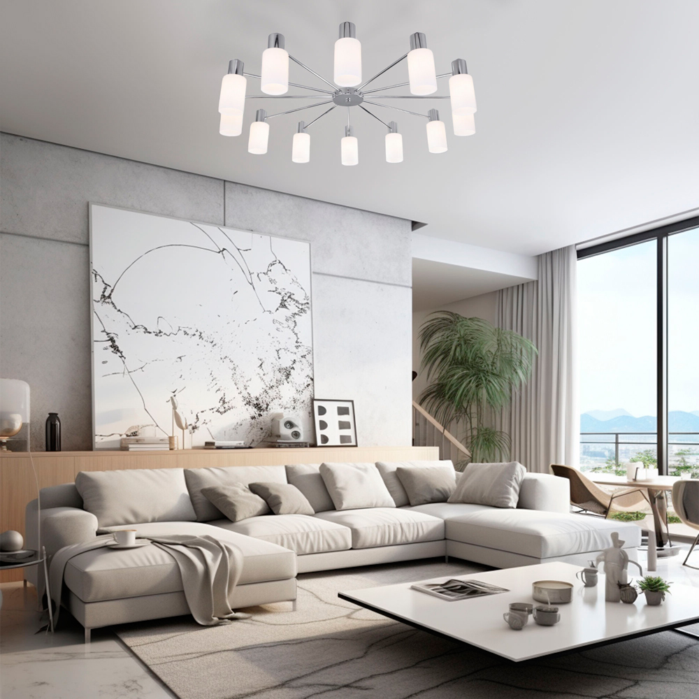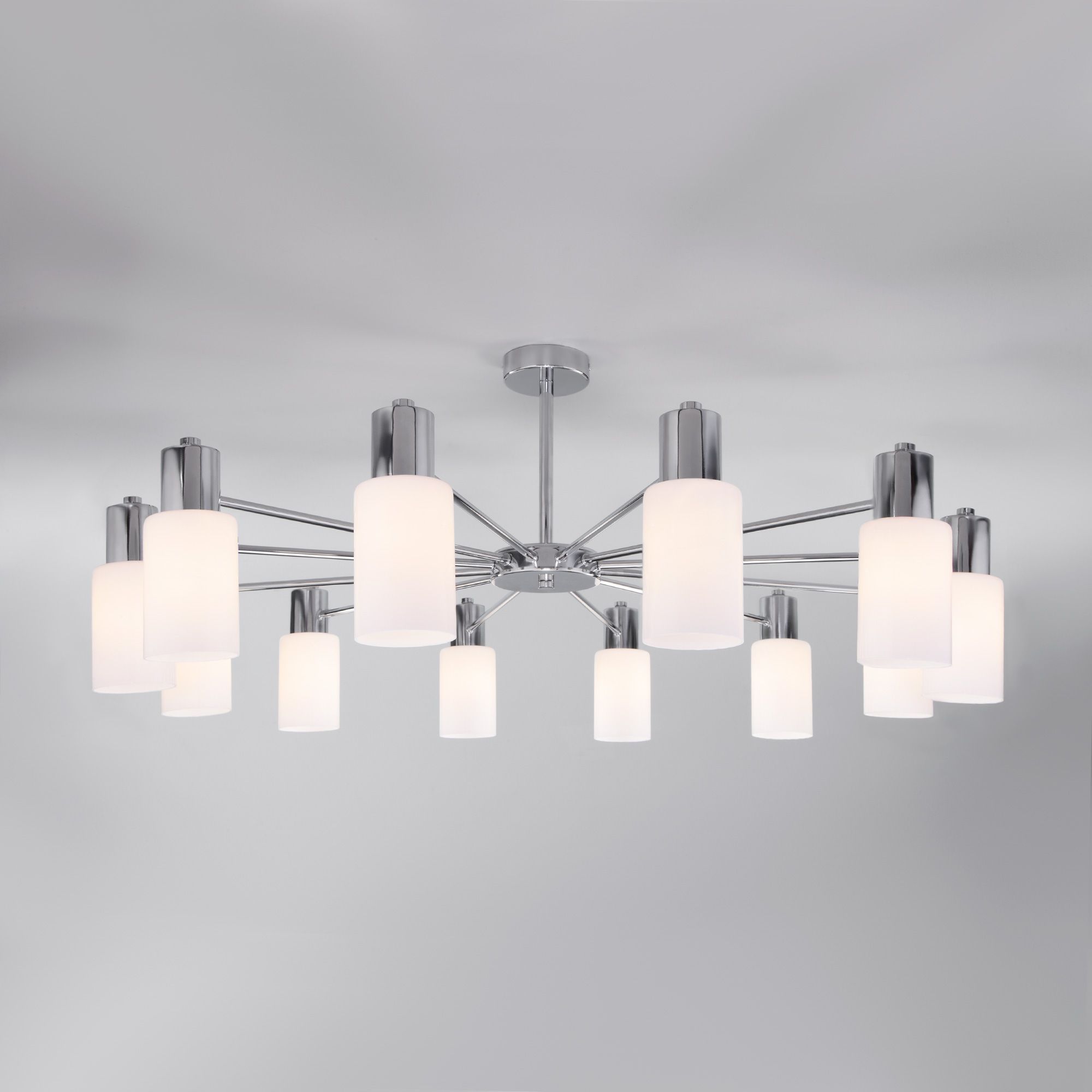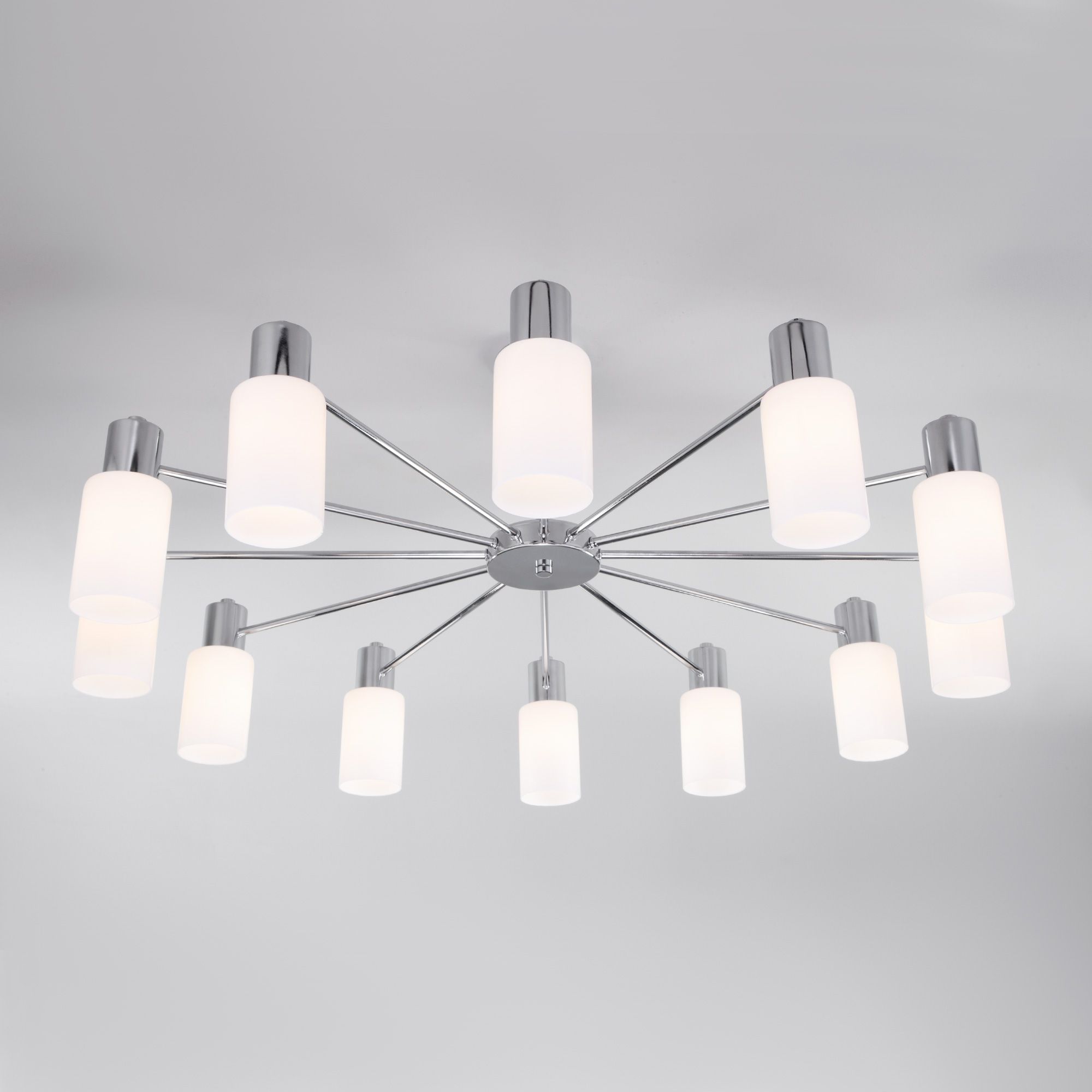 Задействуются лампы с цоколем E14 мощностью 60 Вт, в количестве 12 ед. Цвет модели a057112: Хром.