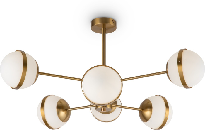 Осветительный прибор выполнен в стиле Джапанди. Подходят лампочки цоколя E27 мощностью 360 Вт, количеством 6 шт. Цвет модели FR5204PL-06BS: Латунь.
