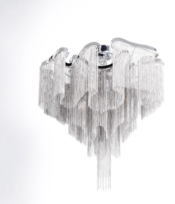 Осветительный прибор выполнен в стиле Арт-Деко. Применяются лампочки цоколя E14 мощностью 240 Вт, количеством 6 шт.