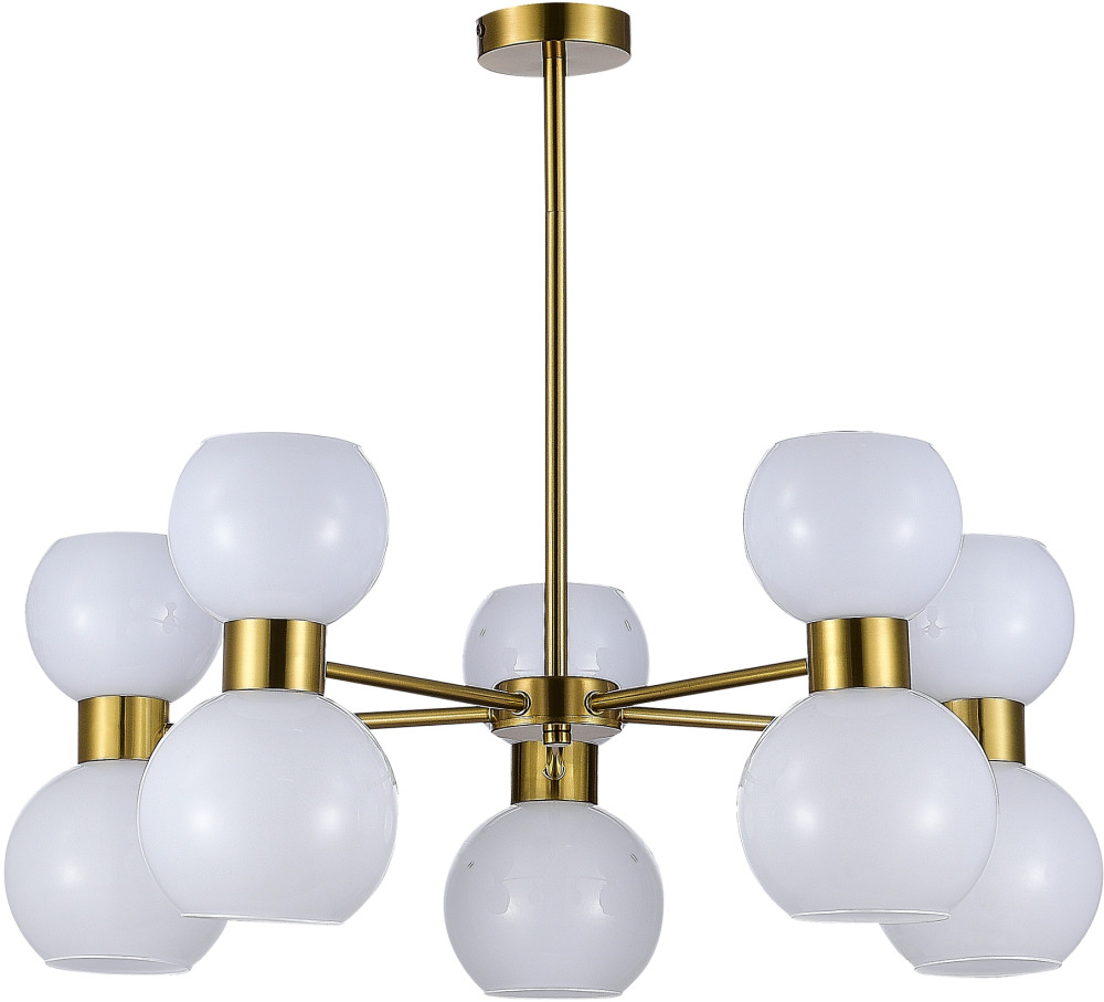 Осветительный прибор сделан в стиле Модерн. Используются лампы цоколя E27 мощностью 600 Вт, количеством 10 ед. Основной цвет модели SLE1138-302-10: Белый.