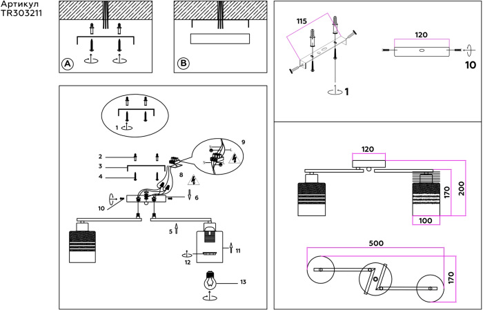 Осветительный прибор выполнен в стиле Модерн. Задействуются лампы с цоколем E27 мощностью 120 Вт, количеством 2 шт. Цвет модели TR303211: Прозрачный,Серый.