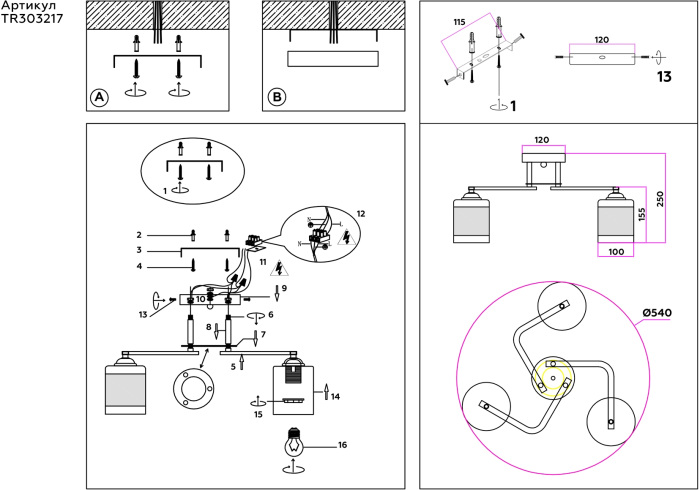Люстра потолочная TR303217 производится брендом Ambrella light из коллекции Traditional. Габариты: высота 250 мм, диаметр 540 мм. Люстры Ambrella light TR303217 изготовлены с использованием высококачественных и прочных материалов, таких как: Металлические,металл, плафон - Стеклянные,стекло.