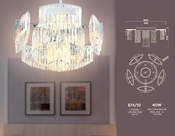 Осветительный прибор создан в стиле Современный. Задействуются лампочки с цоколем E14 мощностью 400 Вт, количеством 10 ед. Основной цвет модели TR5092: Прозрачный.