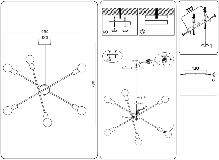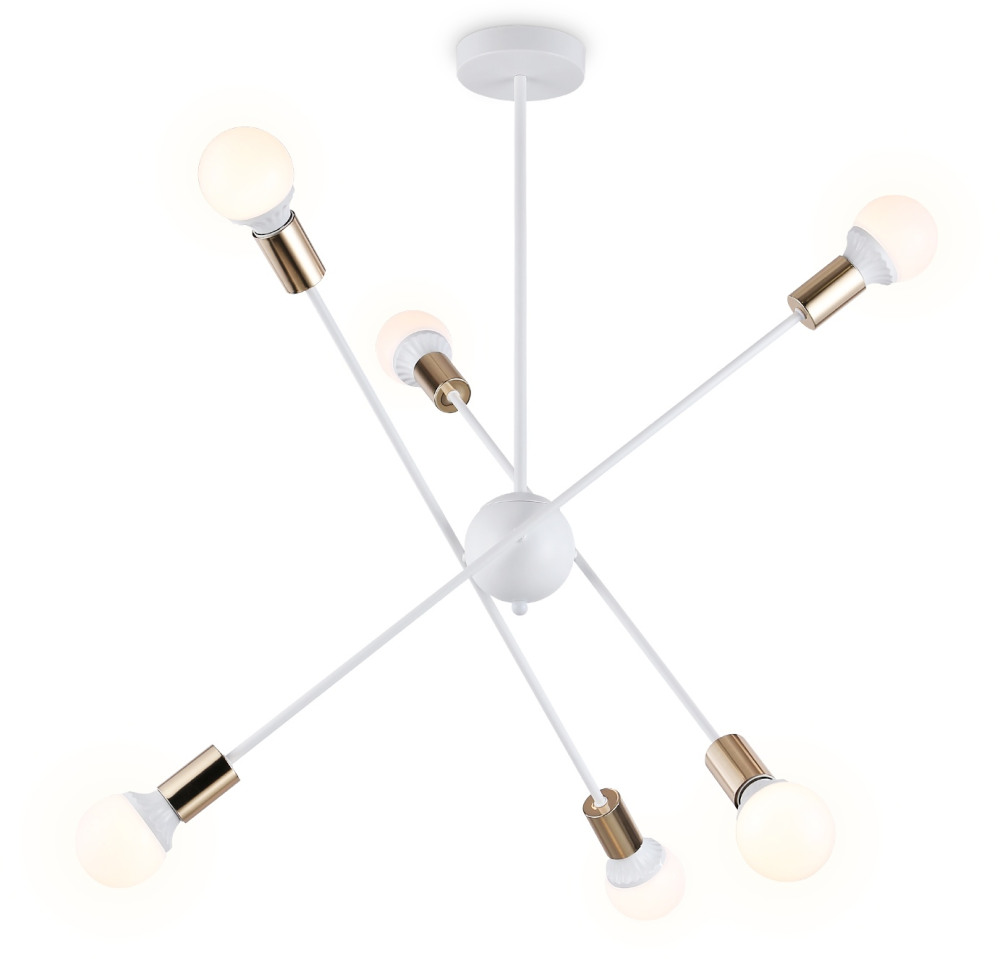 Осветительный прибор создан в стиле Лофт. Задействуются лампы с цоколем E27 мощностью 360 Вт, в количестве 6 ед. Цвет модели TR80432: Белый.