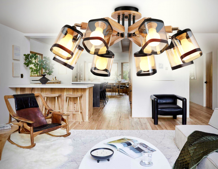 Осветительный прибор разработан в стиле Современный. Применяются лампочки с цоколем E27 мощностью 320 Вт, в количестве 8 шт.