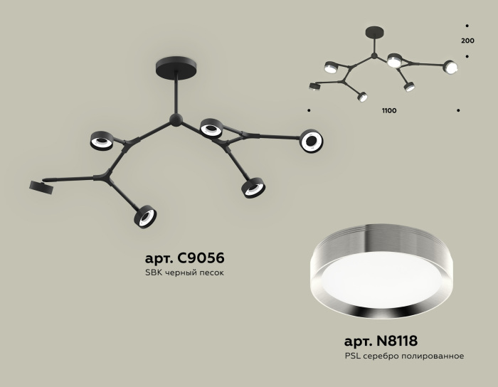 Осветительный прибор выполнен в стиле Современный. Задействуются лампочки с цоколем GX53 мощностью 72 Вт, в количестве 6 шт. Основной цвет модели XB9056151: Чёрный.