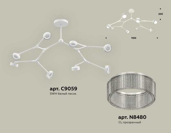 Осветительный прибор выполнен в стиле Современный. Используются лампы с цоколем GX53 мощностью 96 Вт, количеством 8 шт. Цвет модели XB9059201: Белый.