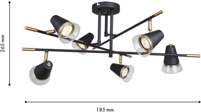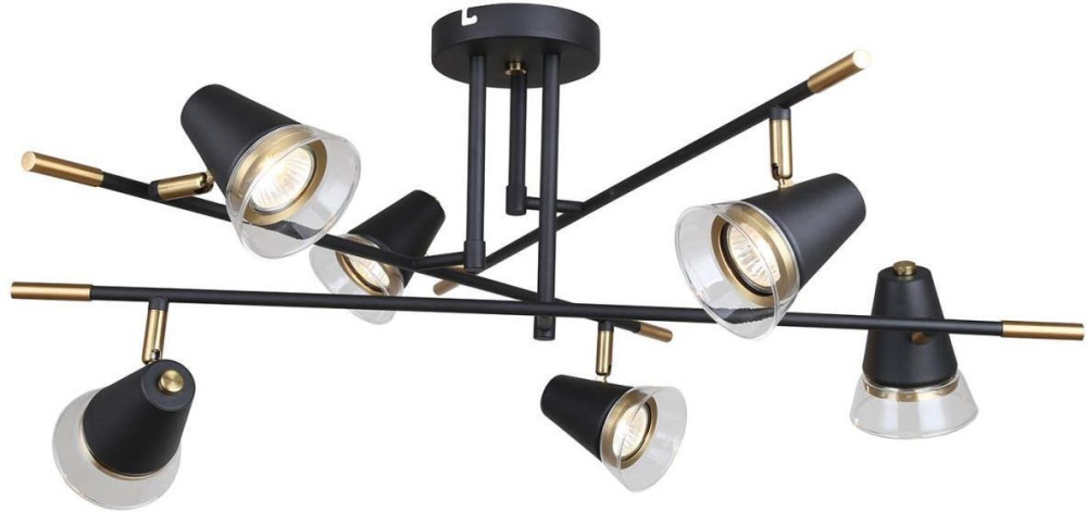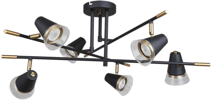 Осветительный прибор разработан в стиле Лофт. Применяются лампочки цоколя GU10 мощностью 210 Вт, количеством 6 шт. Цвет модели 4618-6C: Чёрный.