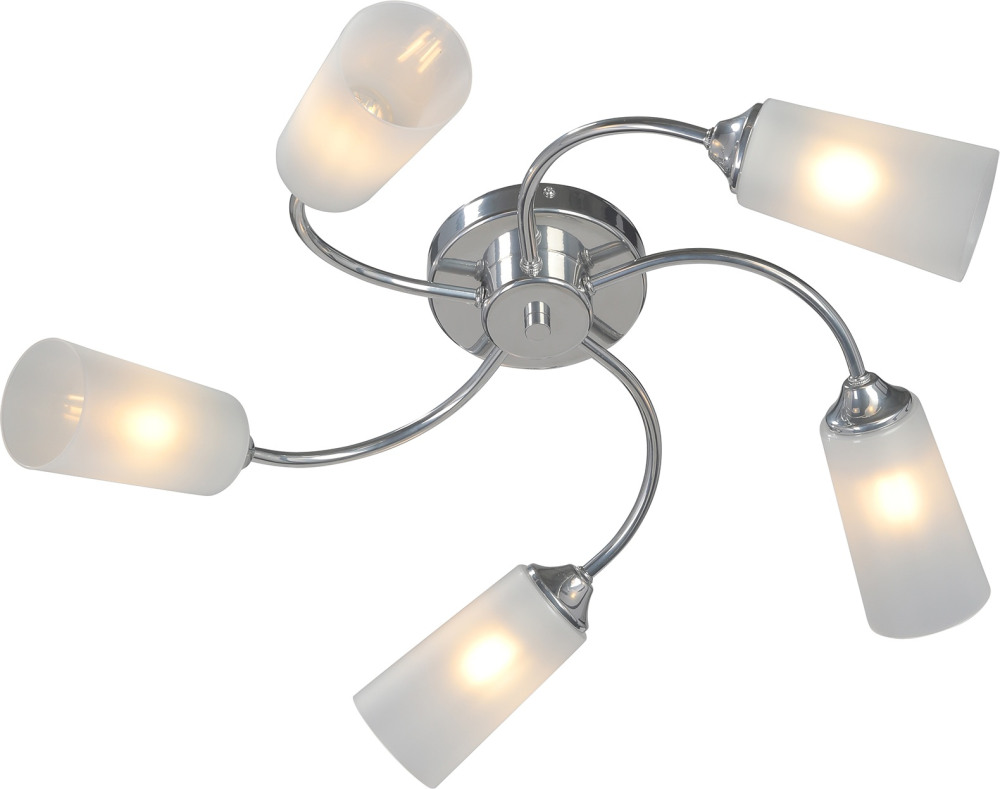 Осветительный прибор сделан в стиле Модерн. Задействуются лампочки цоколя E27 мощностью 200 Вт, в количестве 5 ед. Цвет модели V2831-9/5PL: Прозрачный.