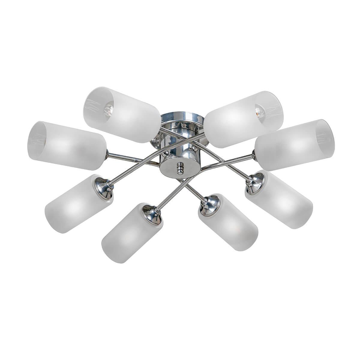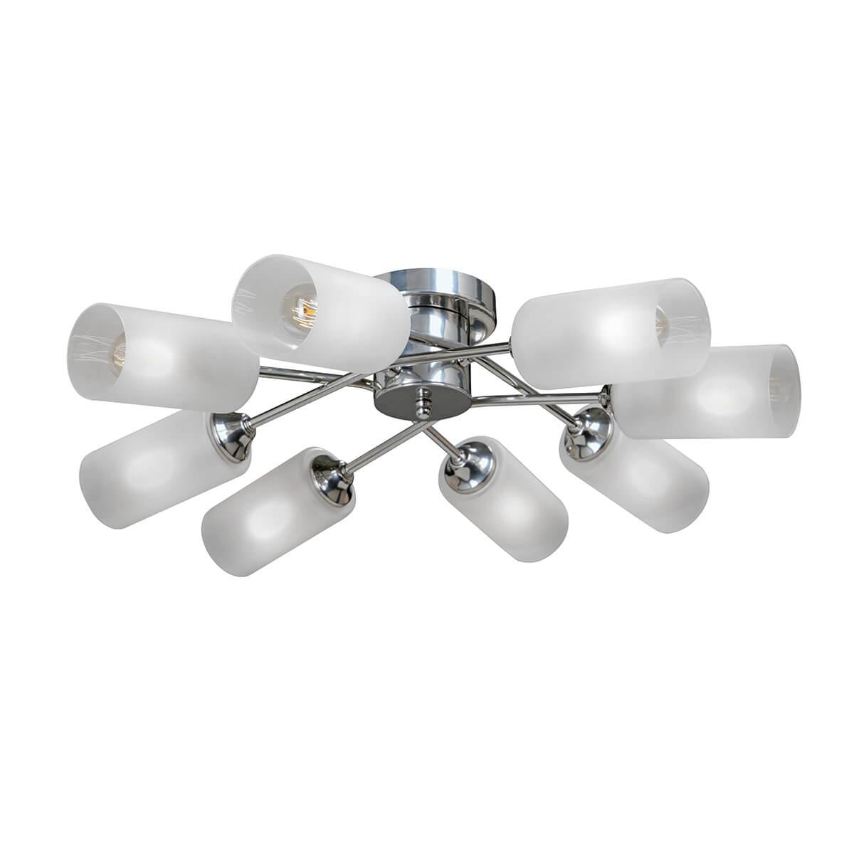 Осветительный прибор сделан в стиле Модерн. Задействуются лампочки цоколя E27 мощностью 320 Вт, в количестве 8 ед. Цвет модели V4755-9/8PL: Хром.