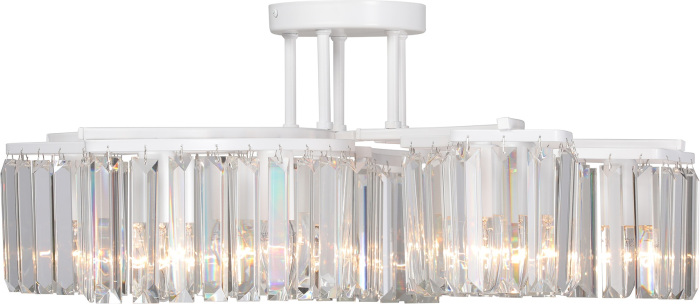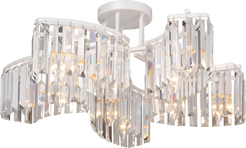 Осветительный прибор создан в стиле Модерн. Задействуются лампы цоколя E14 мощностью 400 Вт, в количестве 10 шт. Основной цвет модели V5884-0/10PL: Прозрачный.