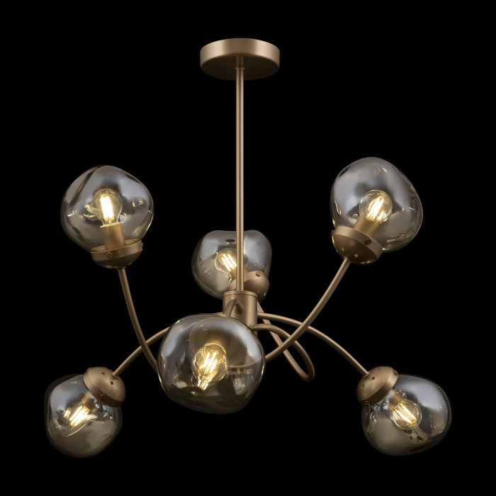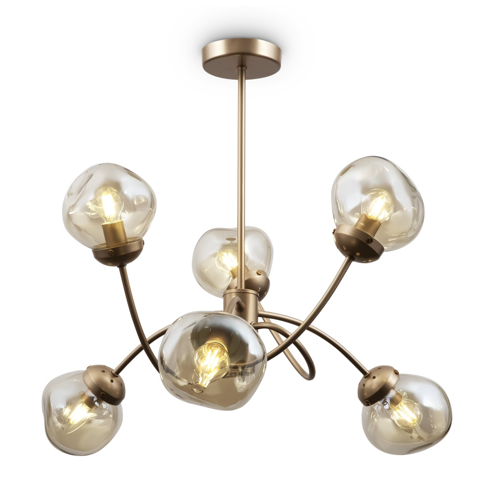 Осветительный прибор сделан в стиле Модерн. Используются лампочки цоколя E14 мощностью 240 Вт, в количестве 6 ед.